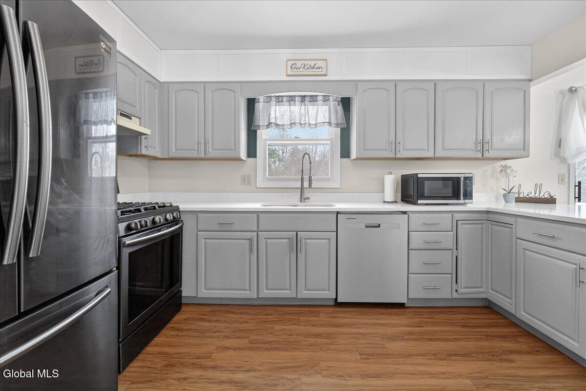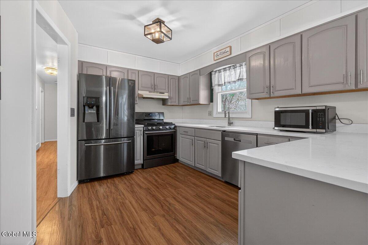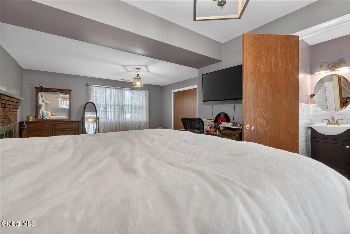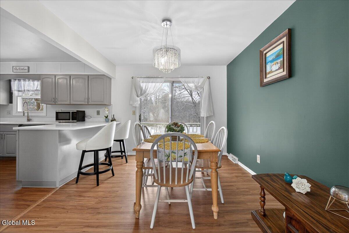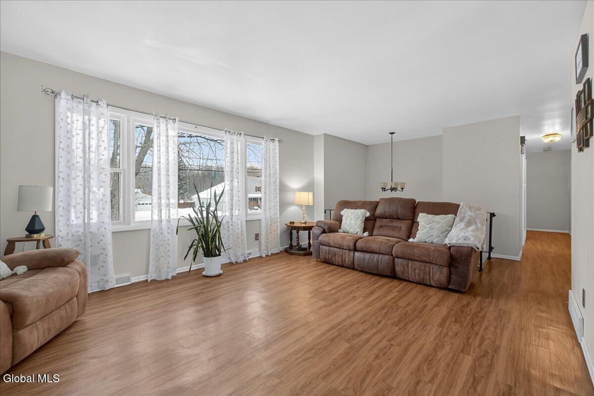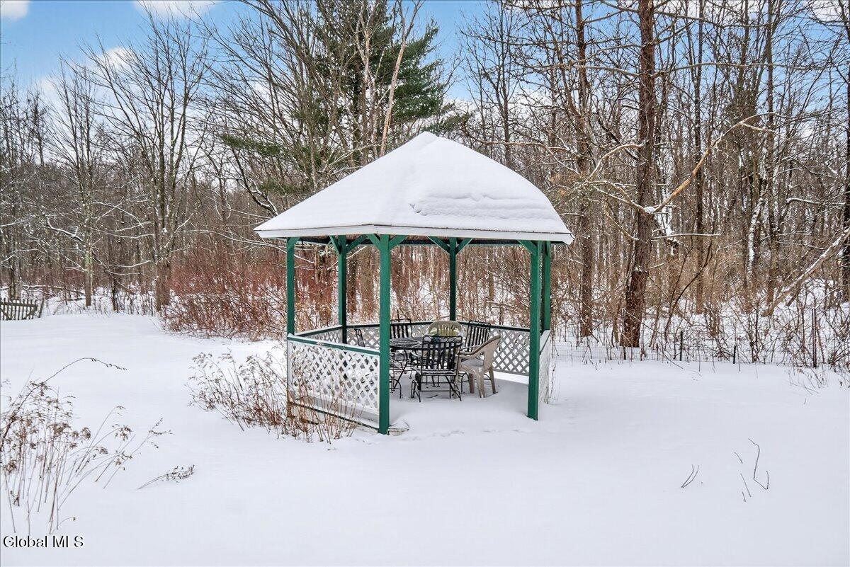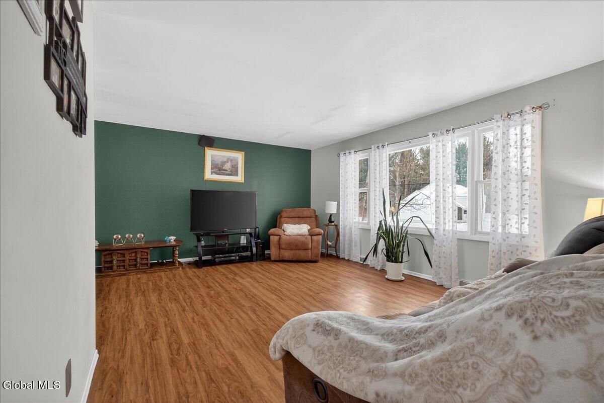 Charming and spacious raised ranch set on a private, sprawling acre. The main level features an open and airy layout with a bright living room, an updated kitchen with stainless steel appliances (including a new dishwasher), and a dining area with sliding glass doors leading to the upper back deck. Three bedrooms and a full bathroom complete this floor. The finished lower level offers additional living space with a laundry room and a generous family room, currently used as a bedroom, featuring a wood-burning fireplace and a half bath. Sliding doors lead to a covered back patio overlooking the serene, tree-lined backyard, complete with a newer pool (just 3 years old) and a gazebo, perfect for relaxing on warm days ahead! Also includes a two-car garage, storage shed, and new seamless gutters with guards. Close to Mariaville Lake and Plotter Kill Preserve, all within the Schalmont School District. See it today!