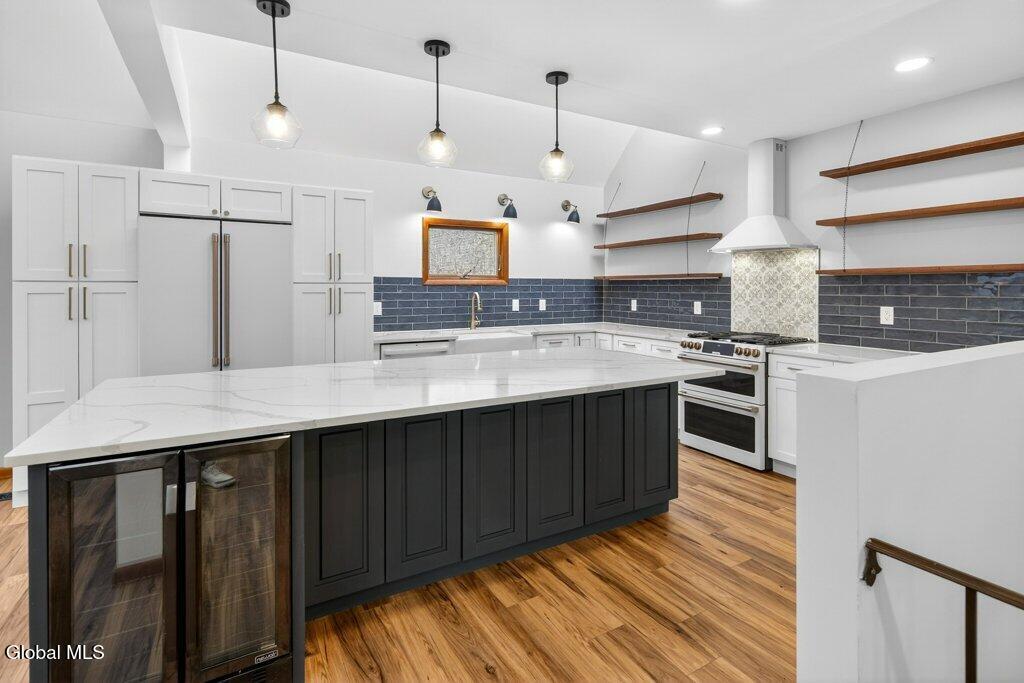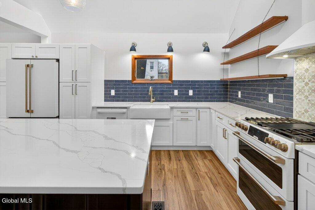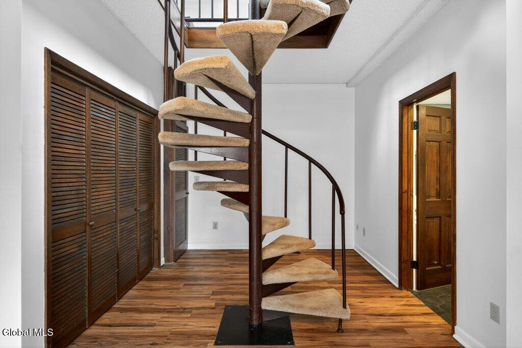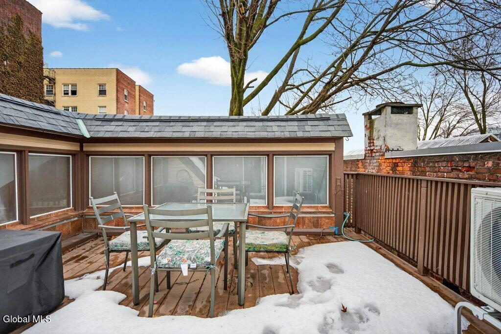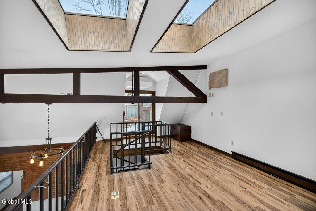 Welcome to 78A Willett Street, Albany. This unique and memorable home was created in an 1800's carriage house, it has 3 floors and over 2400sq ft of living space with a garage and 3rd floor patio/deck over looking downtown skyline. The first floor consists of a huge primary suite, with laundry, walk-in closet and updated bath. The second floor has soaring ceilings, and is bright and airy, with skylights, a large picture window, and tons of natural light. A massive chef's dream kitchen with 4X9 Island, white Cafe appliances, tons of cabinets and storage, huge windows and is enviable! This opens up into the living room with cathedral ceilings and floor to ceiling fireplace, built in bookcase with rolling ladder, and an impressive spa-like full bath with stand alone soaking tub and shower. Then the spiral staircase leads you to the 3rd floor loft and deck. This property is full of flex space(s) and has so many possibilities. Make the loft an office or a bedroom, with its own 1/2 bath too. The deck/patio is perfect for watching the fireworks on the 4th, such a cool and unique space. The property has been thoughtfully updated and maintained. There is new on -demand hot water, ductless air conditioning, kitchen, baths, and roof. All you have to do is stop by and fall in love. You have arrived home, with your own garage and additional parking, in Albany, Across from Washington Park, set back from the street. Take the virtual tour or see it in person, you won't be disappointed.