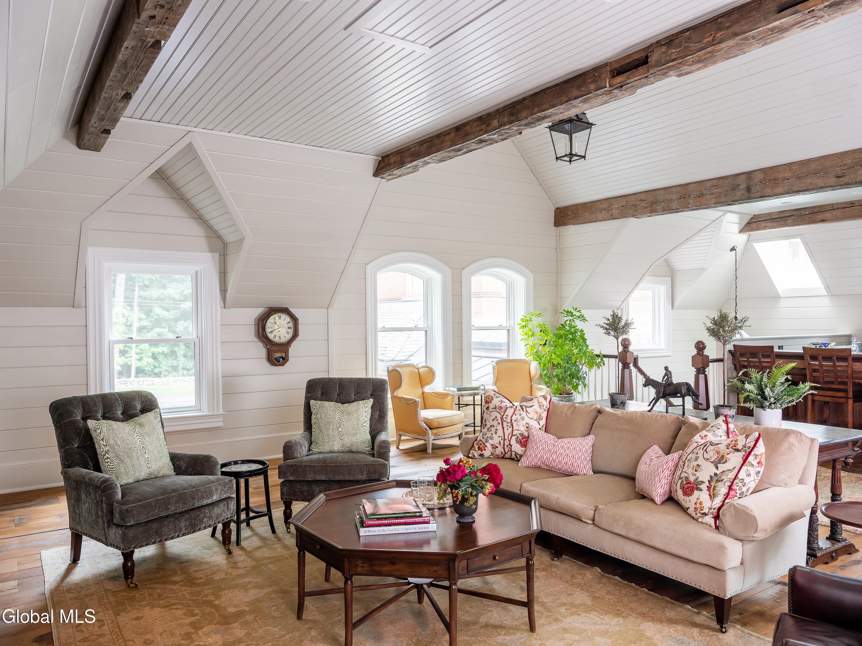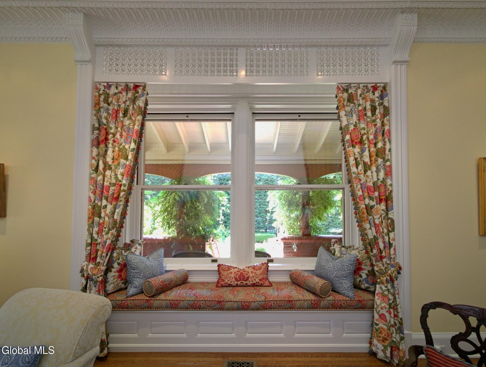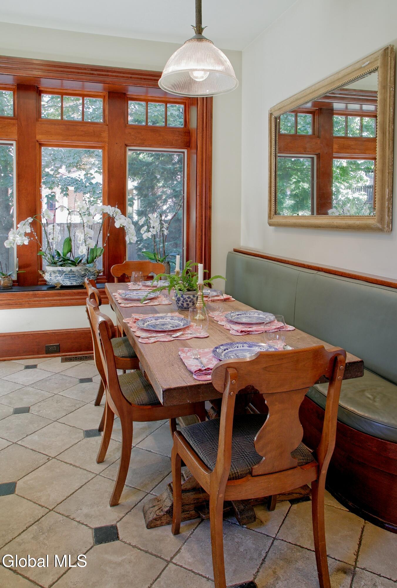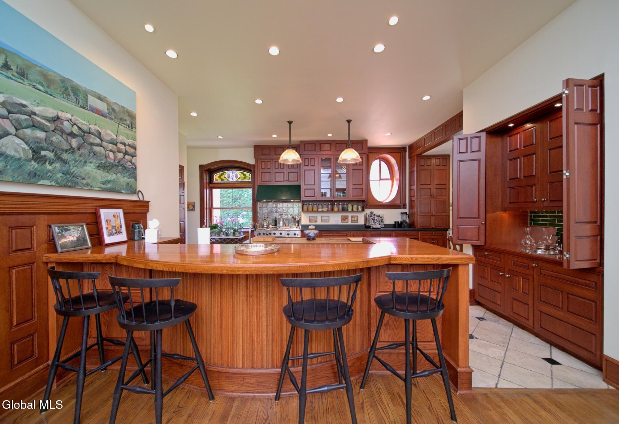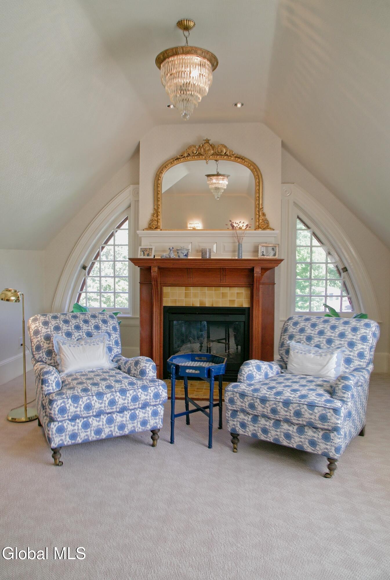 Welcome to Redstone, an exquisite, fully restored and updated historic home located on prestigious North Broadway in the heart of Saratoga Springs. This beautiful Queen Anne Romanesque Revival-style home blends the intricate details and skillful craftsmanship of a bygone era with the comforts and conveniences of today's lifestyle. The brick and sandstone facade, soaring eleven-foot ceilings, masterfully carved woodwork, stained glass windows, mantled fireplaces, and sweeping staircases are among the original features reflecting the home's splendor and artistry. Enjoy hosting both small, intimate gatherings and exciting soirees, aided by the home's thoughtful and modern amenities. The main house features seven en suite bedrooms including a generous primary suite. The live-in kitchen anchors the home with a fireplace, soapstone countertops, mahogany wet bar, and views into the surrounding grounds. A lower-level catering kitchen, wine cellar, elevator, and finished basement further enhance the home's functionality. In 2015, a significant architectural addition was completed, earning the New Contextual Design Award from the Saratoga Springs Preservation Foundation. This Carriage House-style expansion, connected by a skylit mudroom breezeway, includes a vaulted great room, exposed barn beams, reclaimed wood flooring, full bath, custom bar, and a cupola that fills the space with natural light. A sunroom overlooking formal gardens, garden sink area, and two-car garage complete the space. This property offers a wraparound front porch, private side yard, and formal gardens ideal for outdoor entertaining. The location provides easy access to downtown Saratoga Springs and Skidmore College, while preserving a sense of privacy and retreat.