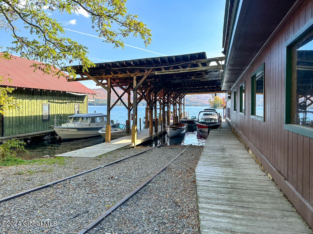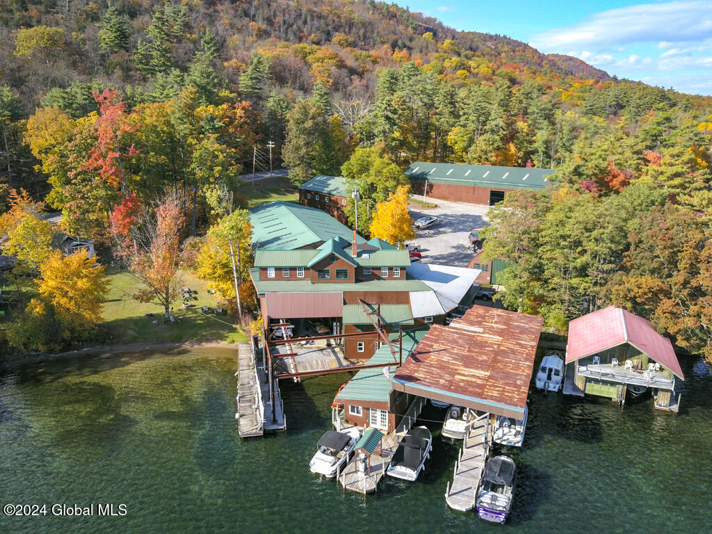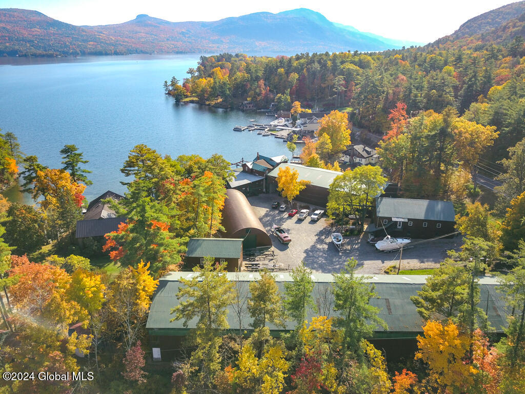 MARINA ON LAKE GEORGE! Don't miss this opportunity to own 110' lakefront prime commercial/residential property on 2+ acres in beautiful Silver Bay. Currently used by an established full-service marina, it has the potential for a townhouse complex (potentially up to10 pad sites). Includes 6 buildings. The main building on the lake has office space, workspace, gas pump w/waterfront shop, and a 3BR/2Bath apartment. There's also a 2-story showroom with office space; 3 large boat storage buildings and a maintenance shop. Beautiful views of the lake and surrounding mountains. The waterfront has 3 docks (2 are 6' wide and the other is 10' wide with gas pump).
