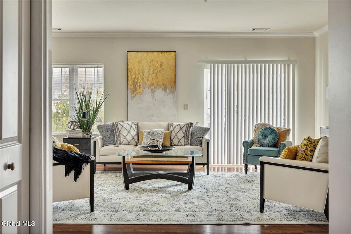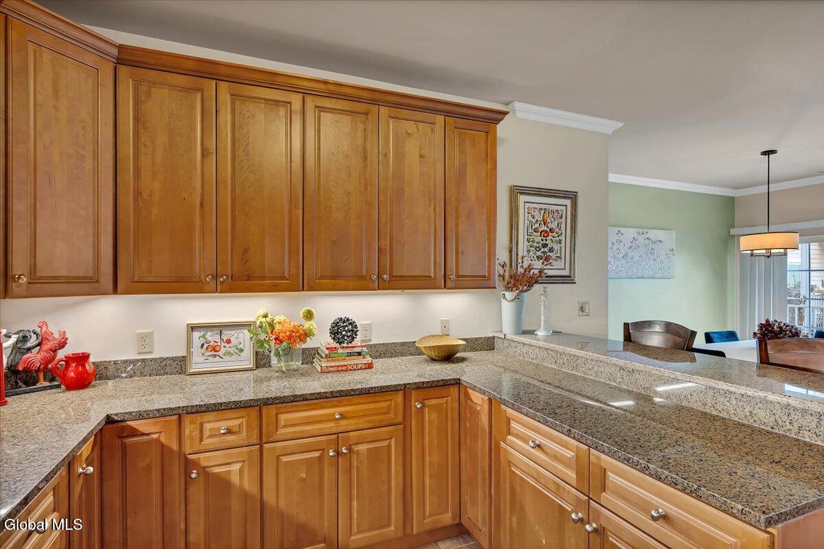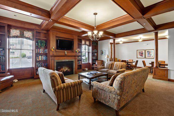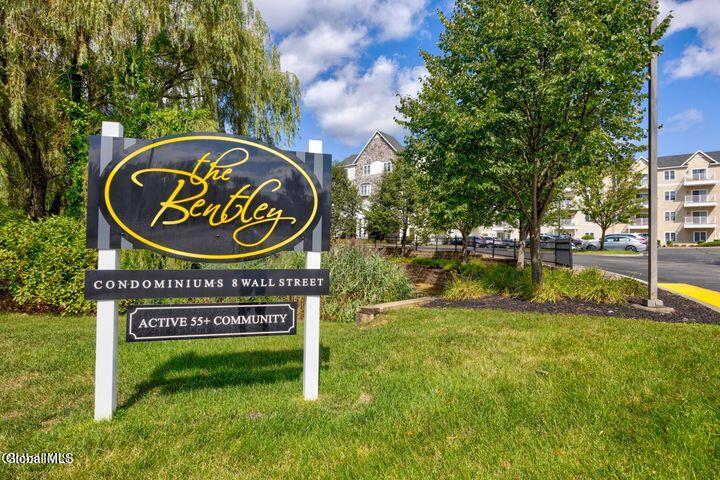 One of the largest floorplans available at The Bentley, Clifton Park's 55+ condominium community. Desirable first floor location, this 1522 sq ft corner condo unit offers two balconies that bring in natural light and outdoor space. The spacious open floorplan includes a comfortable living/dining area, two bedrooms, two full baths, and a separate office/den. The kitchen features custom cabinetry, stone countertops, ceramic tile floor and stainless steel appliances. The Bentley provides a low-maintenance lifestyle with on-site fitness room, library, salon, community room with fireplace, mailroom and an outdoor picnic/garden area. Convenient location makes coming and going simple—no stairs or elevator trips required. Enjoy all Clifton Park has to offer, restaurants, shopping, grocery stores, YMCA. Added benefit includes 1 space in the heated underground garage # 92 and storage facility. Welcome home!