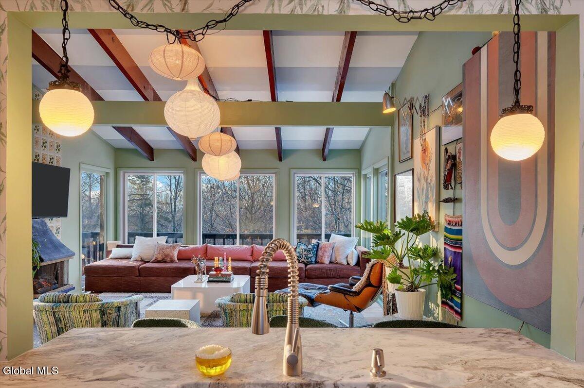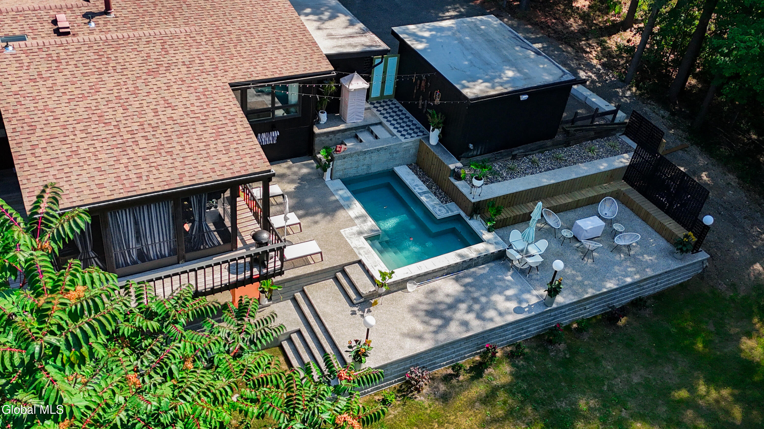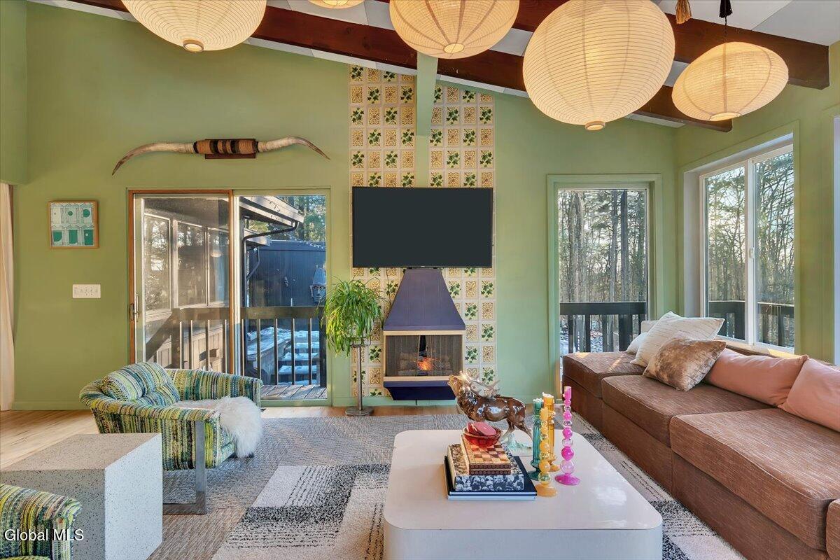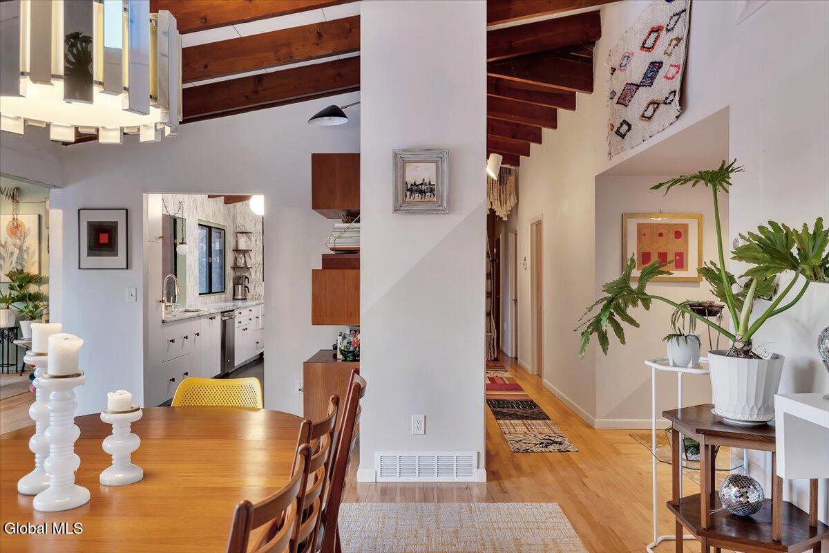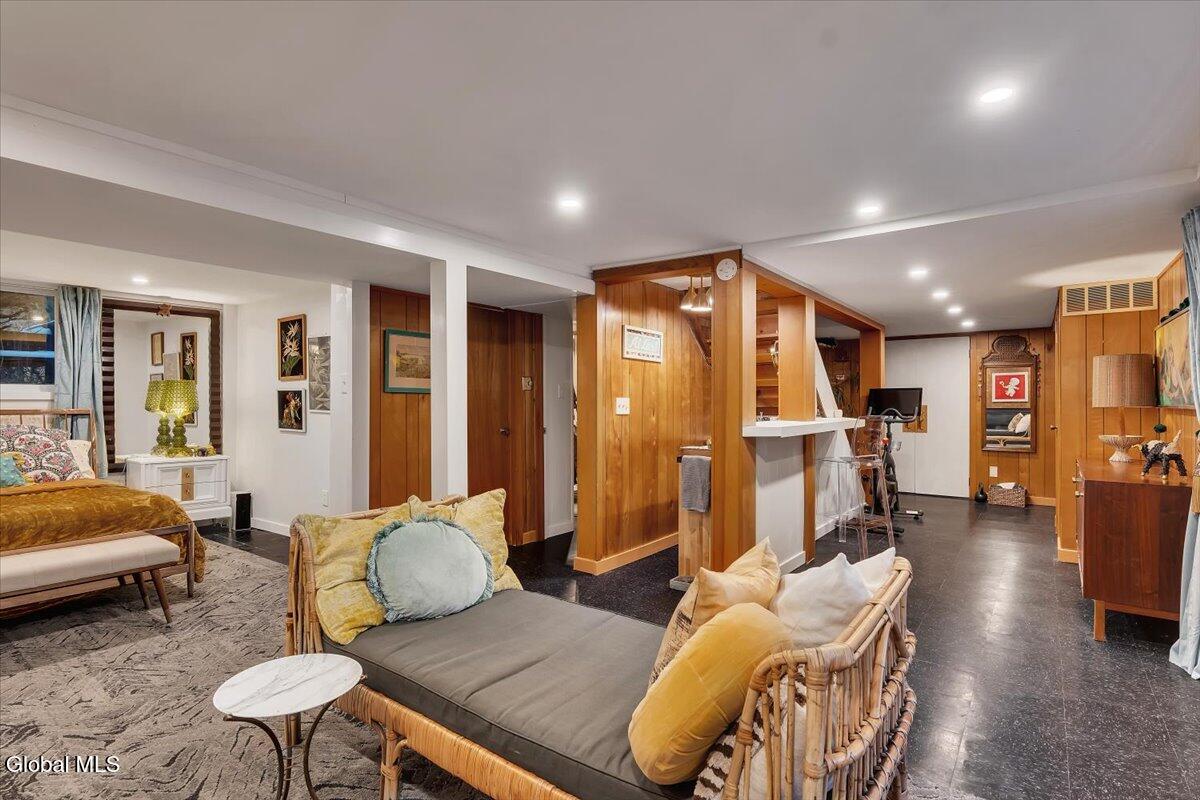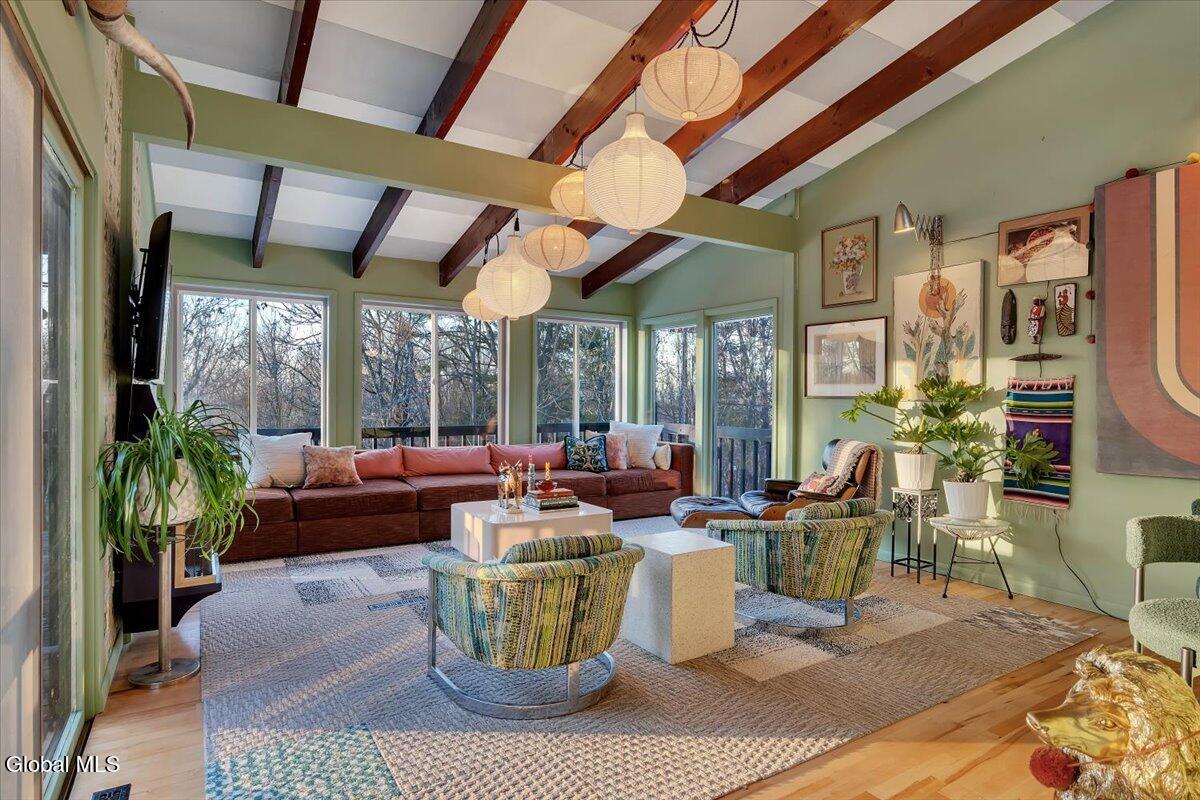 Multiple Offers - Due Jan 29th at 6pm Experience the pinnacle of mid-century modern preservation and contemporary innovation at The Vanguard Villa (80 Van Leuvan Drive S) in North Greenbush. Located in the desirable East Greenbush Schools and Genet Elementary. Originally constructed in 1958, this architecturally authentic masterpiece has been meticulously reimagined to honor its heritage while embracing elevated luxury. Every line reflects a deep respect for the period's architectural language—warm, intentional, and effortlessly sophisticated. The exterior, clad in natural wood siding and crowned with a new architect-designed roof, sets a refined, organic tone. Inside, the main level unfolds beneath dramatic vaulted ceilings, creating an immediate sense of volume. New maple hardwood floors and slate accents enhance the clean geometry and warmth. The reimagined kitchen is a sculptural triumph, boasting granite countertops, a breakfast bar, and a premium five-burner gas range with double ovens. The home offers dual primary suites for ultimate flexibility. The upper-level retreat features a private balcony and a spa-inspired river rock steam shower. The expansive lower-level suite is a destination unto itself, featuring a refined wet bar, a custom walk-in closet, and an iconic mid-century bathroom with a collectible Crane Neuvogue sink. The grounds function as a private modern resort, complete with a redwood wraparound deck, water feature, and new landscaping. The experience is anchored by a saltwater plunge pool that doubles as a hot tub with a high-output heater and European Renolit liner, surrounded by two new river stone patios. Modern infrastructure includes a whole-house Generac generator, Pella windows, new skylights, new AC, a three-car garage, and a central vacuum system. This is a rare offering where curated design meets timeless innovation.