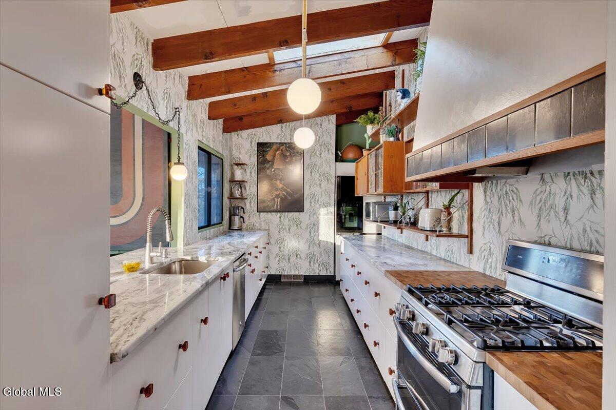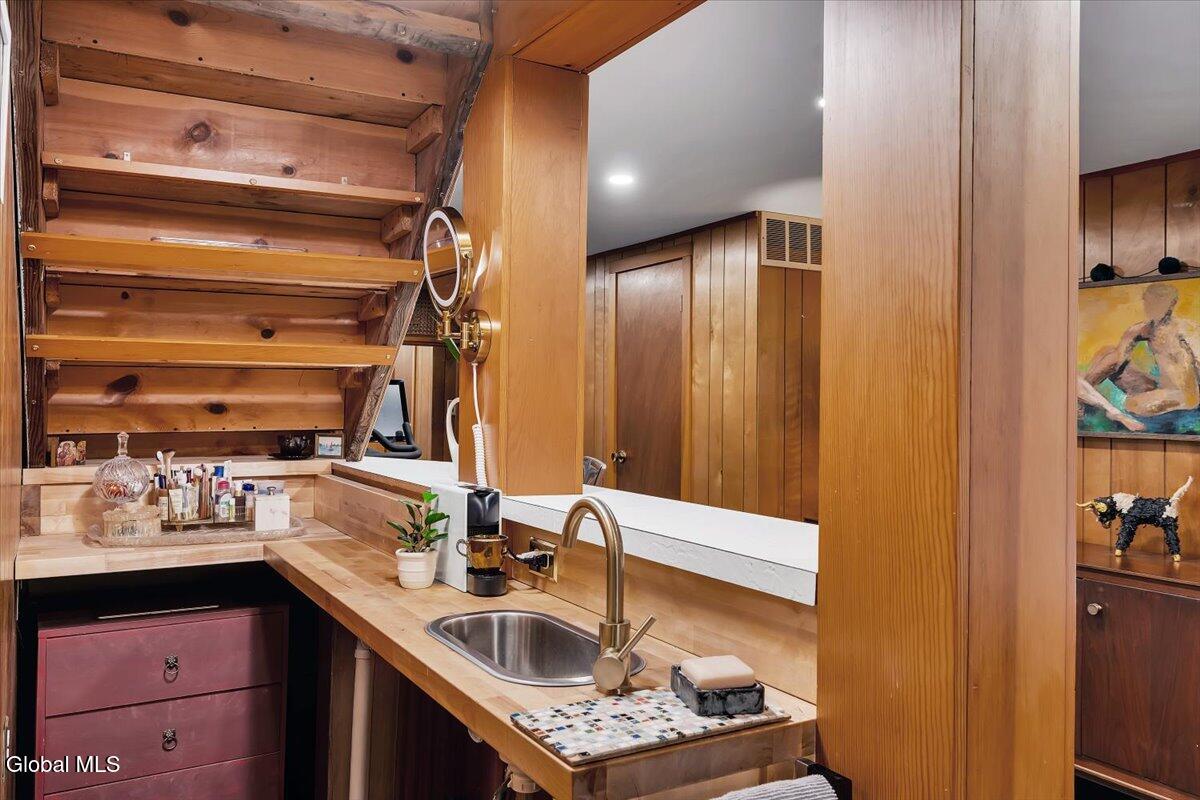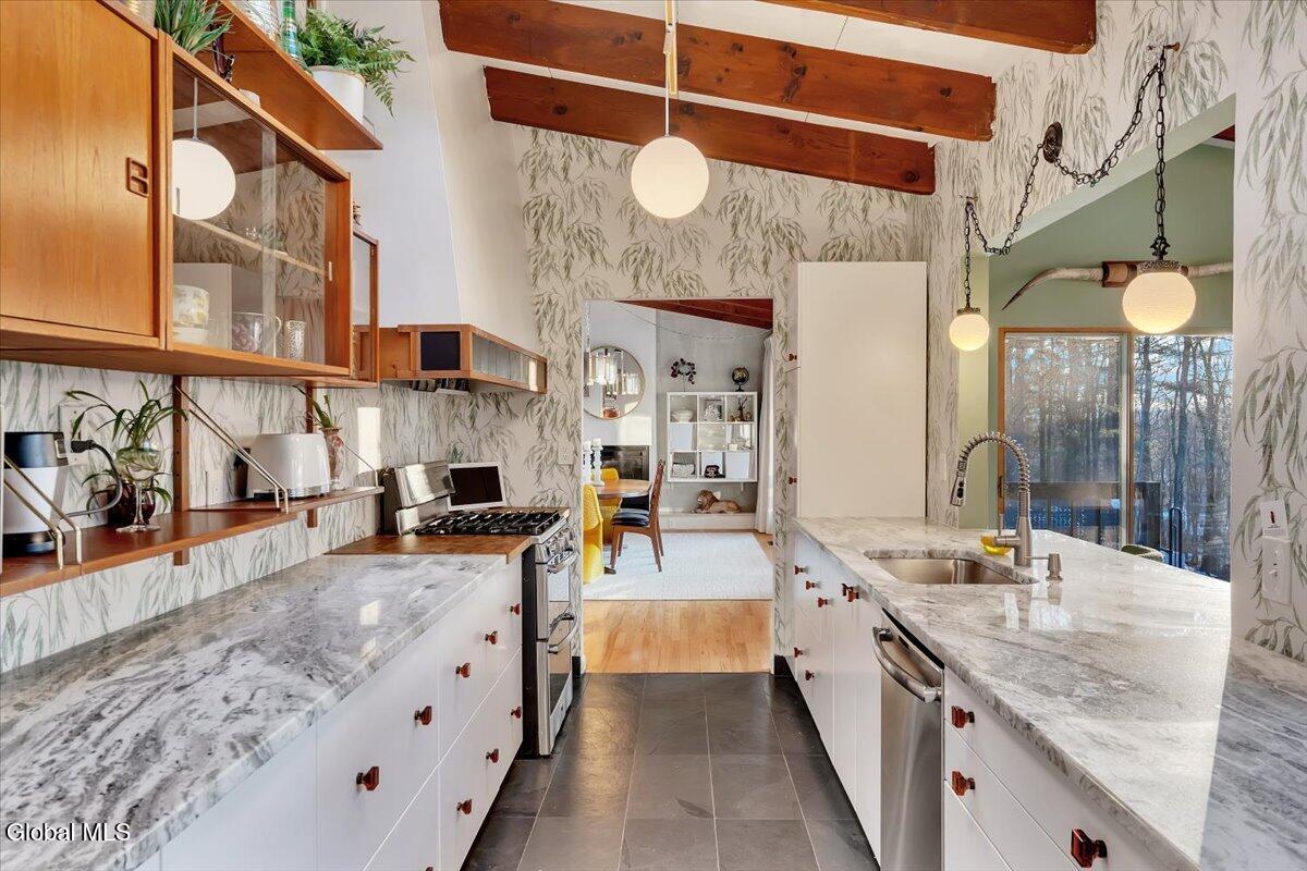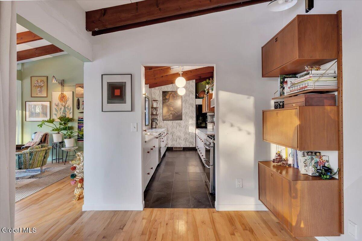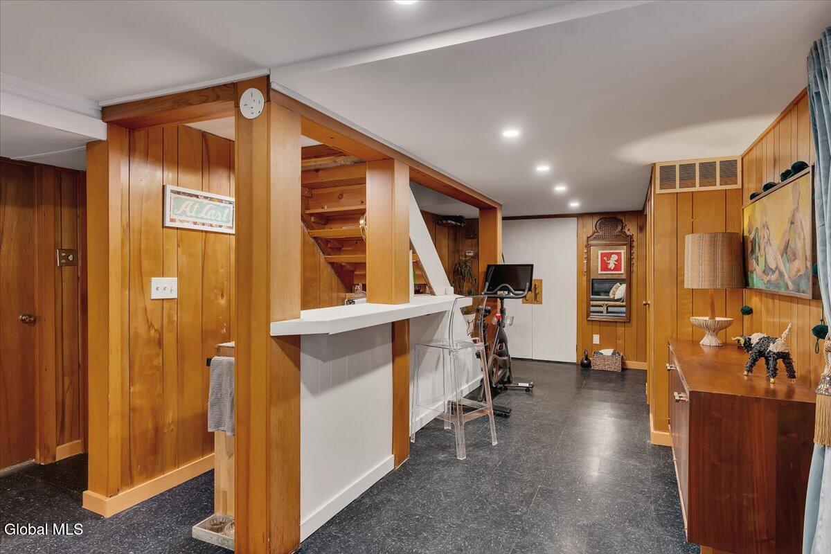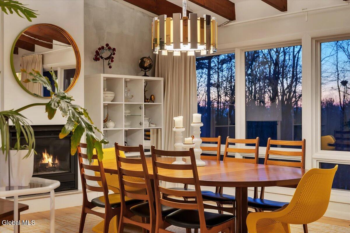 Multiple Offers - Due Jan 29th at 6pm Experience the pinnacle of mid-century modern preservation and contemporary innovation at The Vanguard Villa (80 Van Leuvan Drive S) in North Greenbush. Located in the desirable East Greenbush Schools and Genet Elementary. Originally constructed in 1958, this architecturally authentic masterpiece has been meticulously reimagined to honor its heritage while embracing elevated luxury. Every line reflects a deep respect for the period's architectural language—warm, intentional, and effortlessly sophisticated. The exterior, clad in natural wood siding and crowned with a new architect-designed roof, sets a refined, organic tone. Inside, the main level unfolds beneath dramatic vaulted ceilings, creating an immediate sense of volume. New maple hardwood floors and slate accents enhance the clean geometry and warmth. The reimagined kitchen is a sculptural triumph, boasting granite countertops, a breakfast bar, and a premium five-burner gas range with double ovens. The home offers dual primary suites for ultimate flexibility. The upper-level retreat features a private balcony and a spa-inspired river rock steam shower. The expansive lower-level suite is a destination unto itself, featuring a refined wet bar, a custom walk-in closet, and an iconic mid-century bathroom with a collectible Crane Neuvogue sink. The grounds function as a private modern resort, complete with a redwood wraparound deck, water feature, and new landscaping. The experience is anchored by a saltwater plunge pool that doubles as a hot tub with a high-output heater and European Renolit liner, surrounded by two new river stone patios. Modern infrastructure includes a whole-house Generac generator, Pella windows, new skylights, new AC, a three-car garage, and a central vacuum system. This is a rare offering where curated design meets timeless innovation.