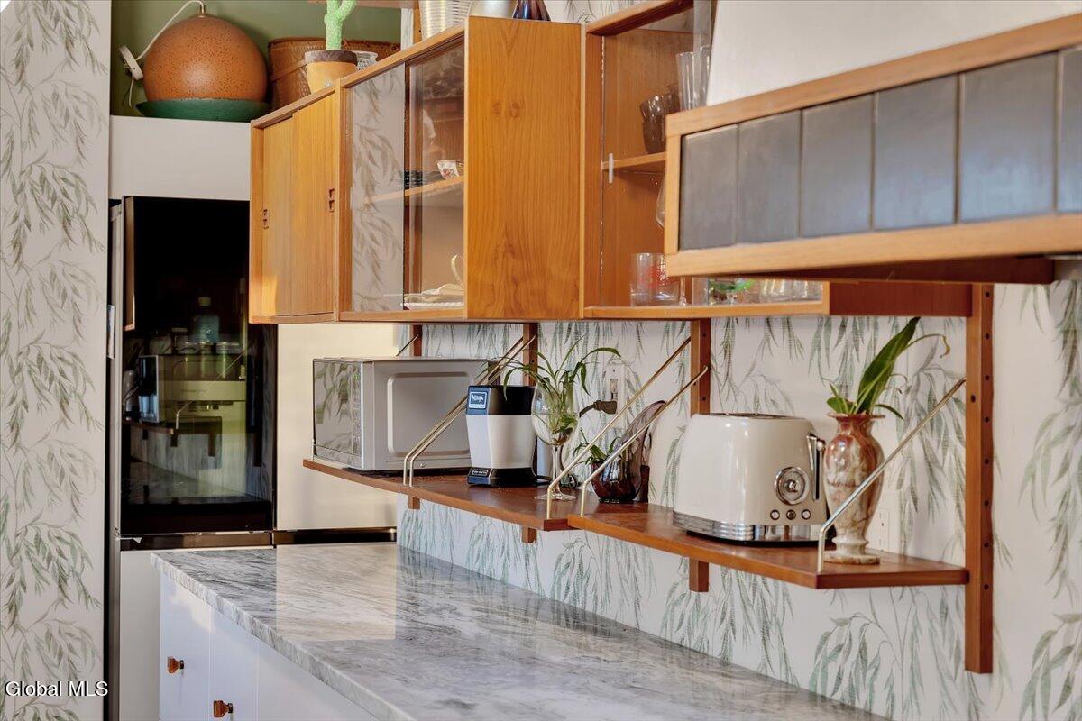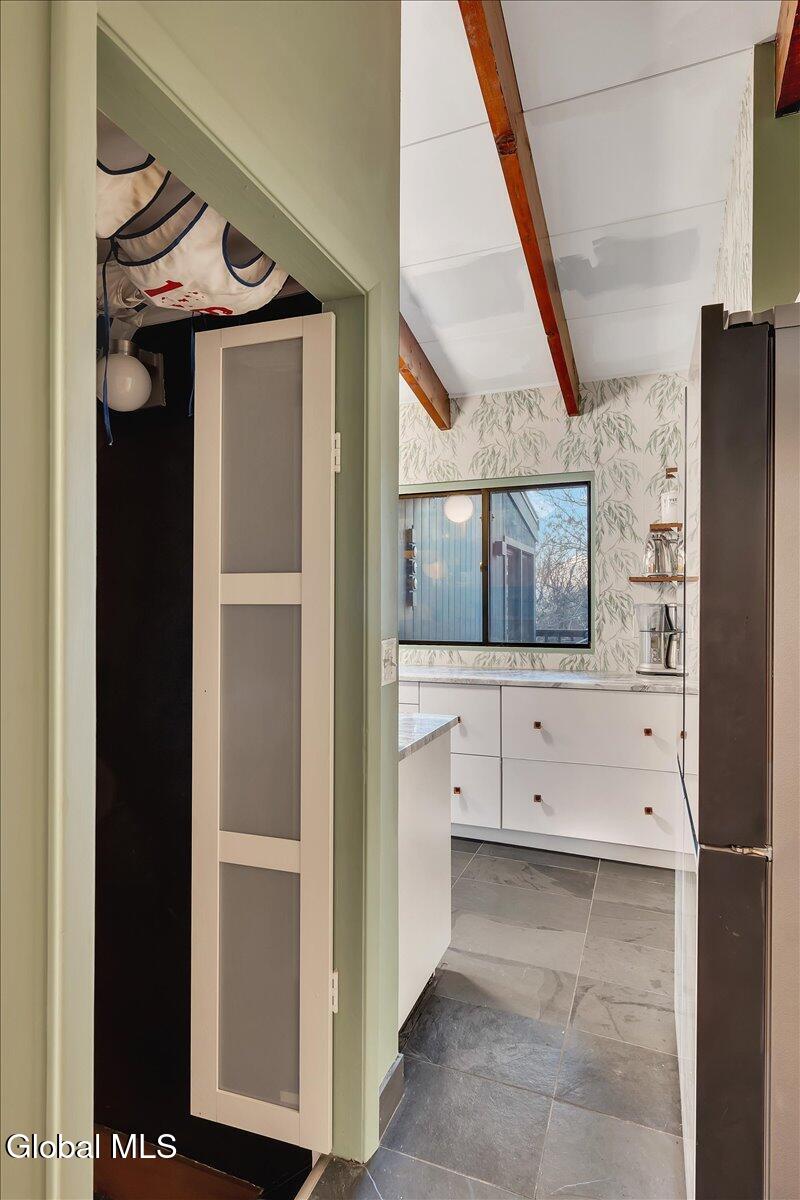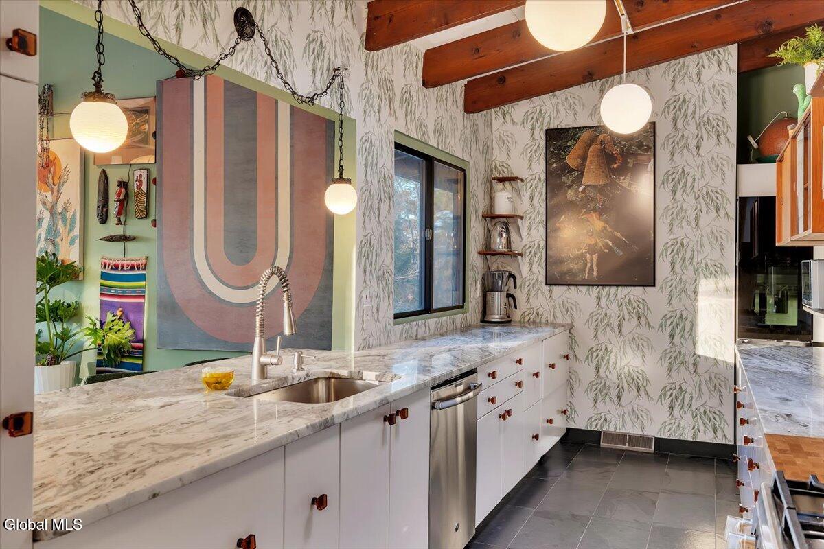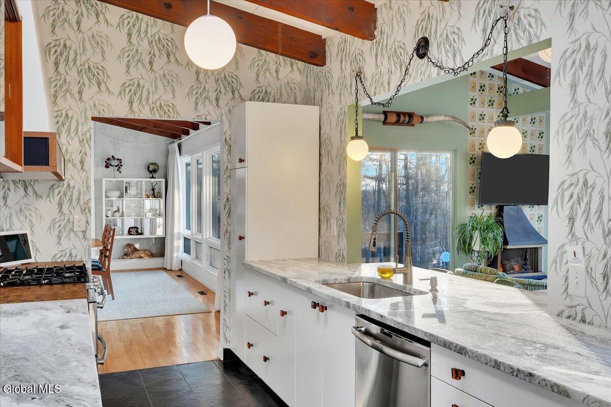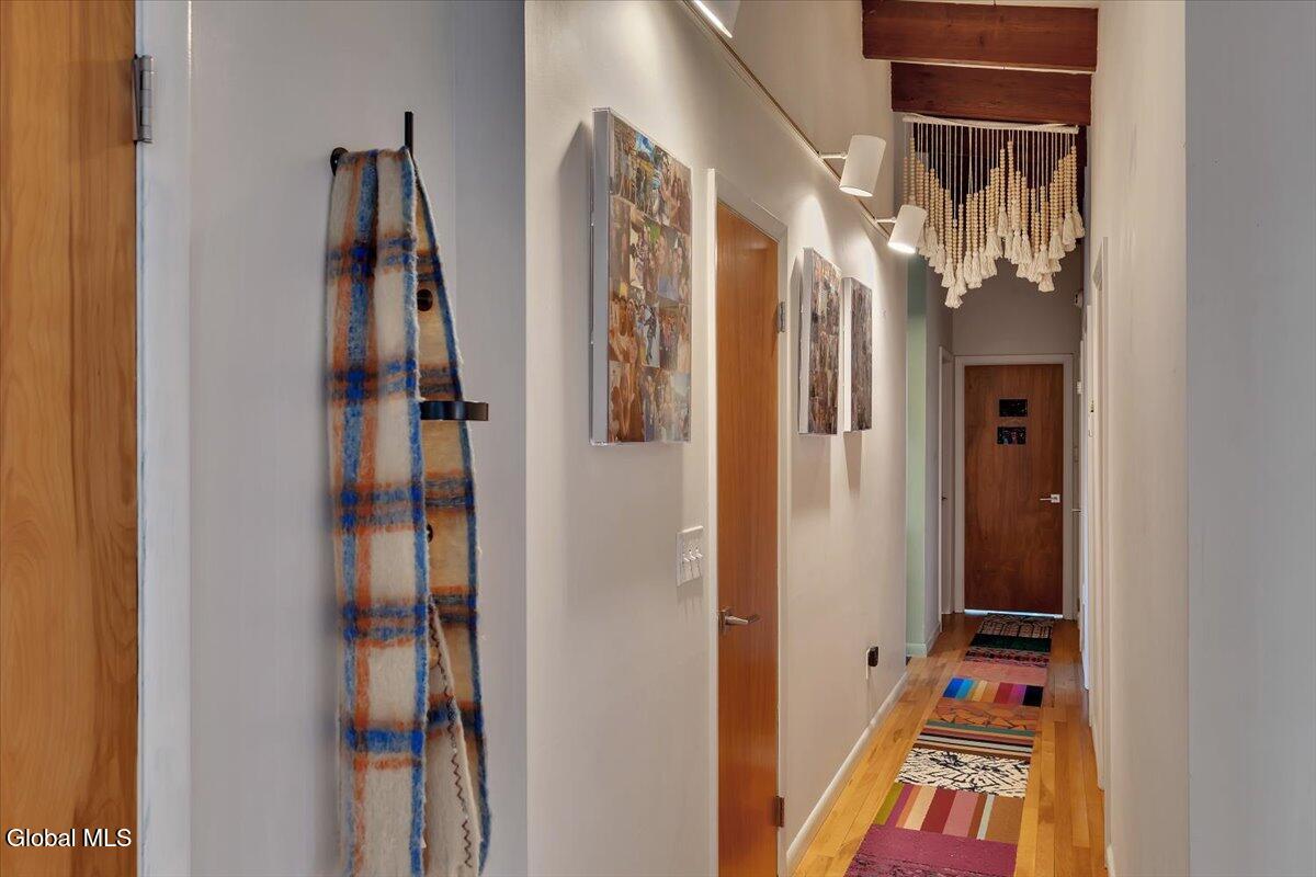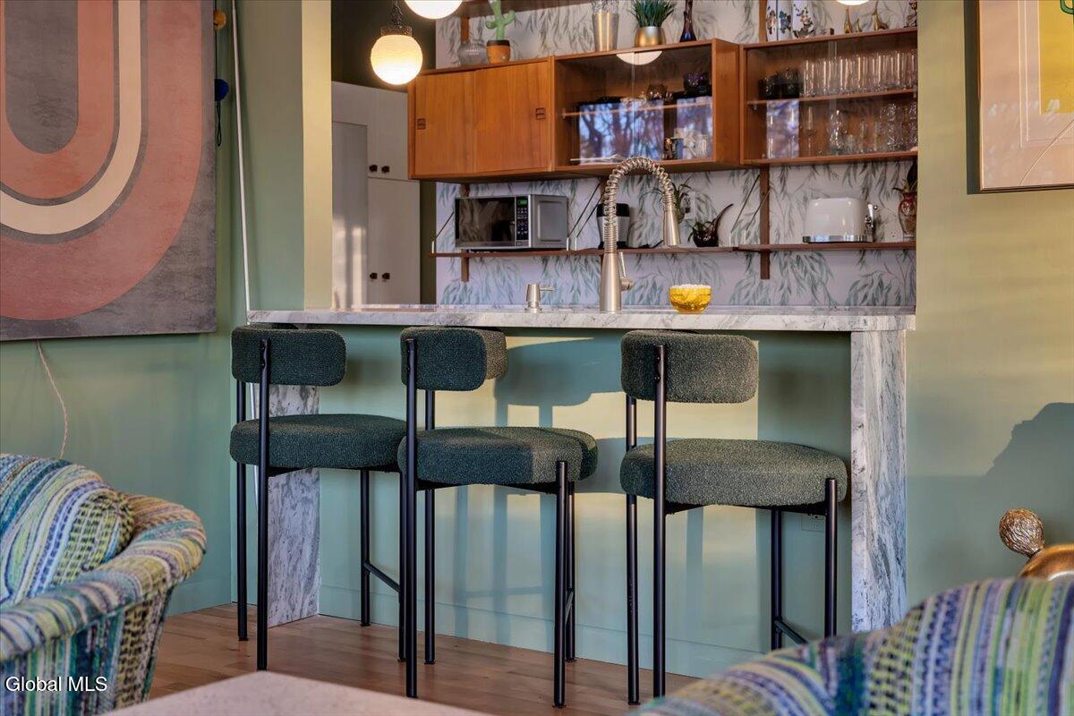 Multiple Offers - Due Jan 29th at 6pm Experience the pinnacle of mid-century modern preservation and contemporary innovation at The Vanguard Villa (80 Van Leuvan Drive S) in North Greenbush. Located in the desirable East Greenbush Schools and Genet Elementary. Originally constructed in 1958, this architecturally authentic masterpiece has been meticulously reimagined to honor its heritage while embracing elevated luxury. Every line reflects a deep respect for the period's architectural language—warm, intentional, and effortlessly sophisticated. The exterior, clad in natural wood siding and crowned with a new architect-designed roof, sets a refined, organic tone. Inside, the main level unfolds beneath dramatic vaulted ceilings, creating an immediate sense of volume. New maple hardwood floors and slate accents enhance the clean geometry and warmth. The reimagined kitchen is a sculptural triumph, boasting granite countertops, a breakfast bar, and a premium five-burner gas range with double ovens. The home offers dual primary suites for ultimate flexibility. The upper-level retreat features a private balcony and a spa-inspired river rock steam shower. The expansive lower-level suite is a destination unto itself, featuring a refined wet bar, a custom walk-in closet, and an iconic mid-century bathroom with a collectible Crane Neuvogue sink. The grounds function as a private modern resort, complete with a redwood wraparound deck, water feature, and new landscaping. The experience is anchored by a saltwater plunge pool that doubles as a hot tub with a high-output heater and European Renolit liner, surrounded by two new river stone patios. Modern infrastructure includes a whole-house Generac generator, Pella windows, new skylights, new AC, a three-car garage, and a central vacuum system. This is a rare offering where curated design meets timeless innovation.