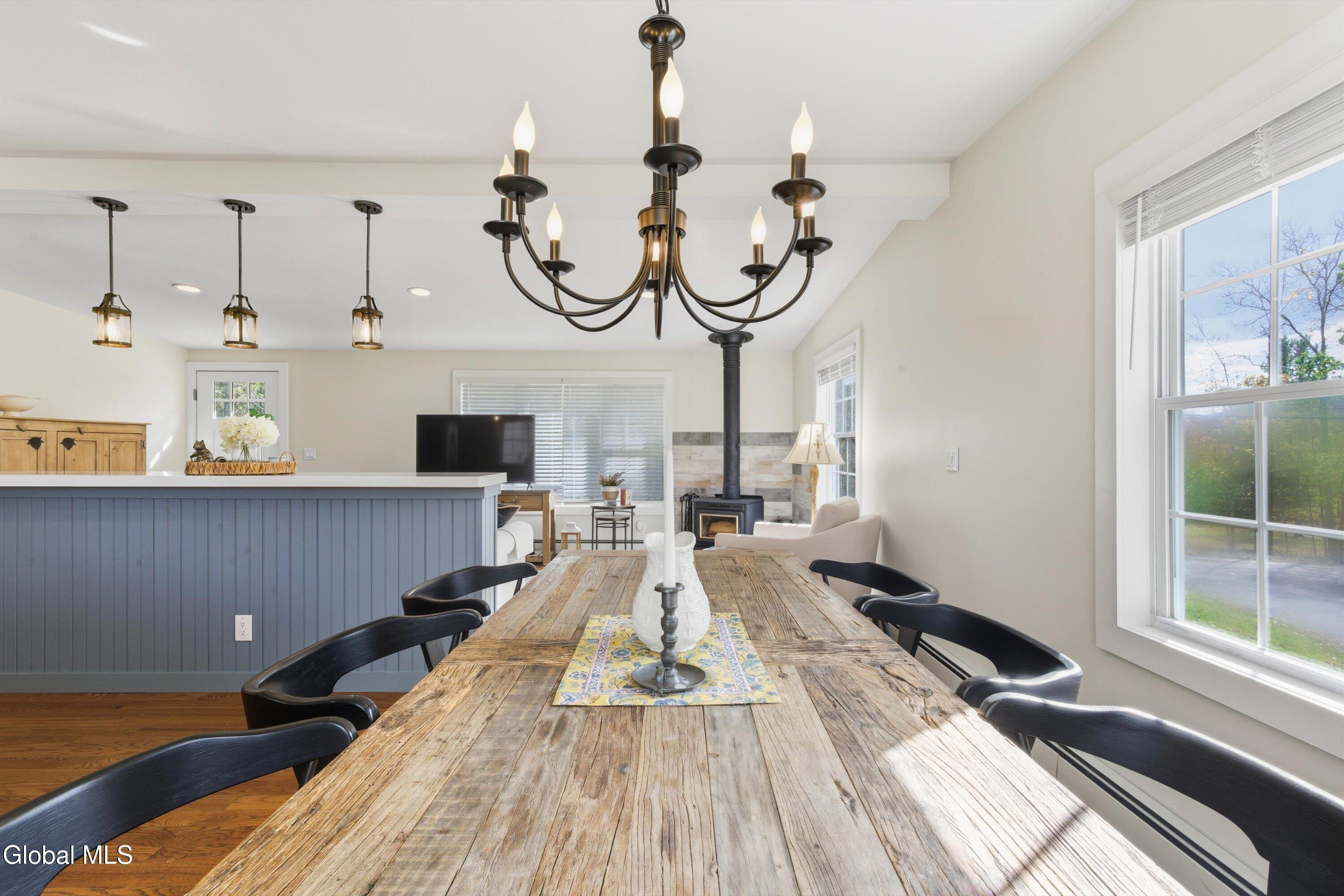 Welcome to your dream home nestled in the peaceful countryside, modern updates meet rustic charm in this beautifully maintained 3-bedroom, 1-bathroom residence. JUST 20 MINUTES FROM THE WINDHAM MOUNTAIN CLUB Set on a picturesque, landscaped lot, this home offers the perfect blend of indoor comfort and outdoor living. Step inside to a bright and airy open-concept living space featuring fresh paint throughout and thoughtfully updated finishes. The full bathroom includes stylish fixtures, and wall-mounted electric heater for added comfort. All three bedrooms offer peaceful views Step outside to enjoy a Trex deck that overlooks the beautifully manicured/landscaped yard, complete with custom stone walkway, and a built-in stone firepit - perfect for crisp country evenings. Green thumbs will love the raised bed garden, while everyone will appreciate the privacy and tranquility the yard provides. This home is equipped with smart and efficient systems, including a tankless hot water heater, attic fan on thermostat, ceiling-mounted electric heater in the garage, and transfer switch for a future genrator hookup. The oversized 2-car garage features brand-new doors and ample space for storage or projects and includes a large, secure mounted safe. A brand-new stone driveway adds both curb appeal and durability. And there's more!