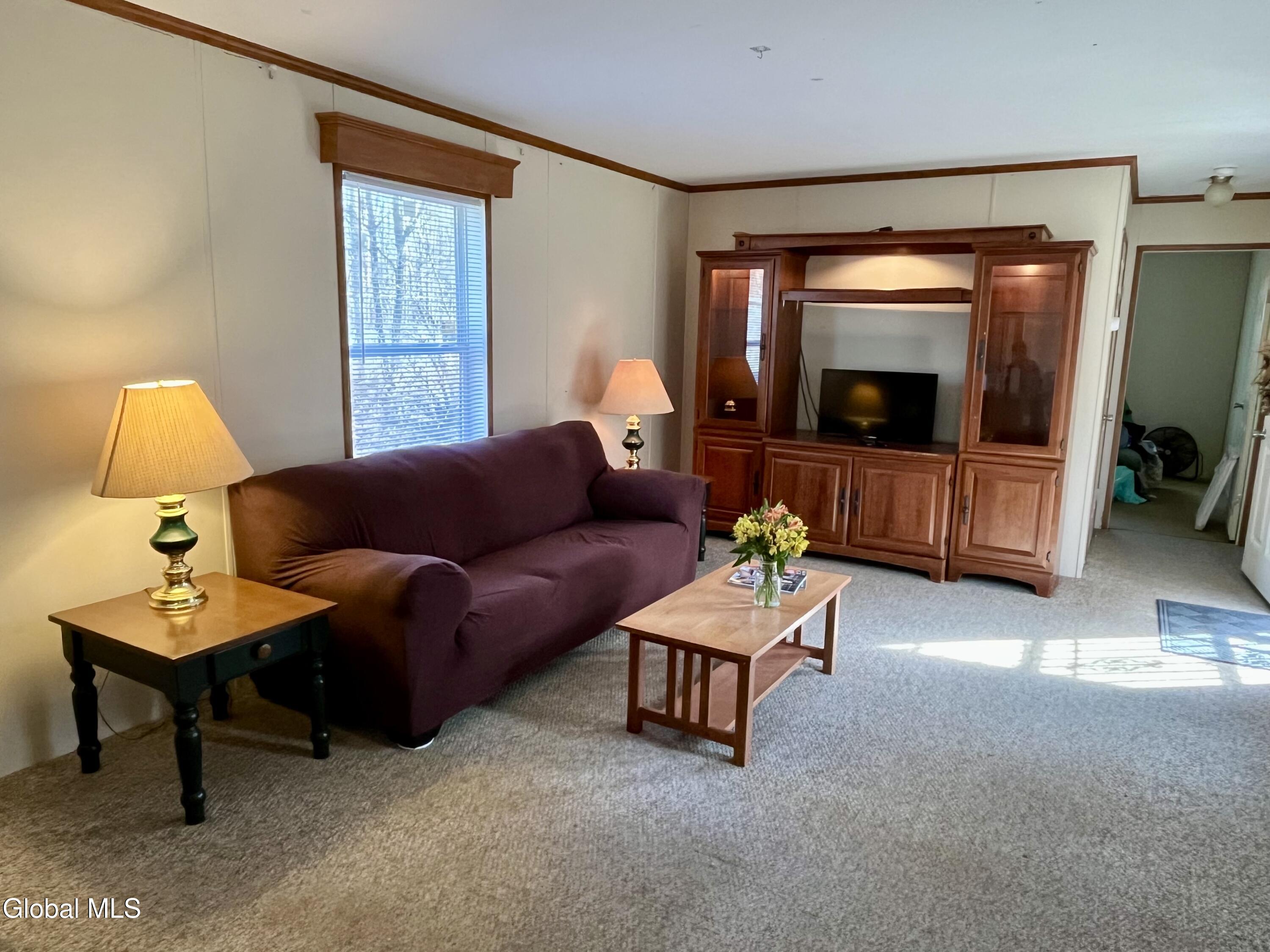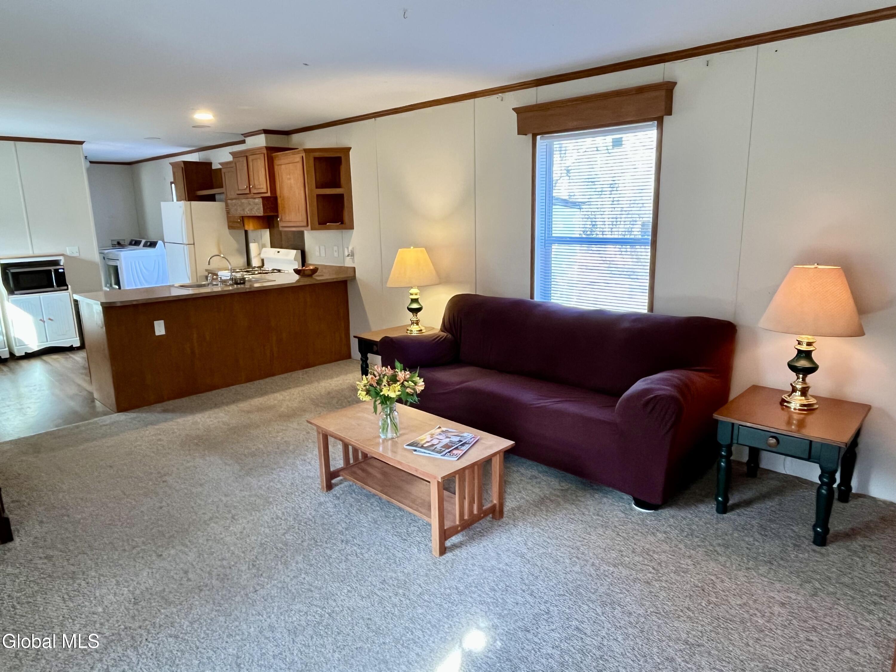 OPEN SUNDAY April 12th, 2-4 PM. Affordable Saratoga Springs Country Living in this 2 bedroom home on over an acre. This 10 yr old Cozy house has a large, natural lot with lovely shade trees and privacy, and plenty of room for relaxing, projects, gardens or raising chickens. Less than 5 miles to grocery, banks, restaurants and park w/ playground and pickleball. Great room, Central Air, ONE level living with ramp to front door. Saratoga Schools. Easy 8 minute drive to Spa park, Saratoga Racino or Saratoga Race Track. Quick close is OK. Can be partially furnished or empty at close upon request. (Shed in back AS-IS)
