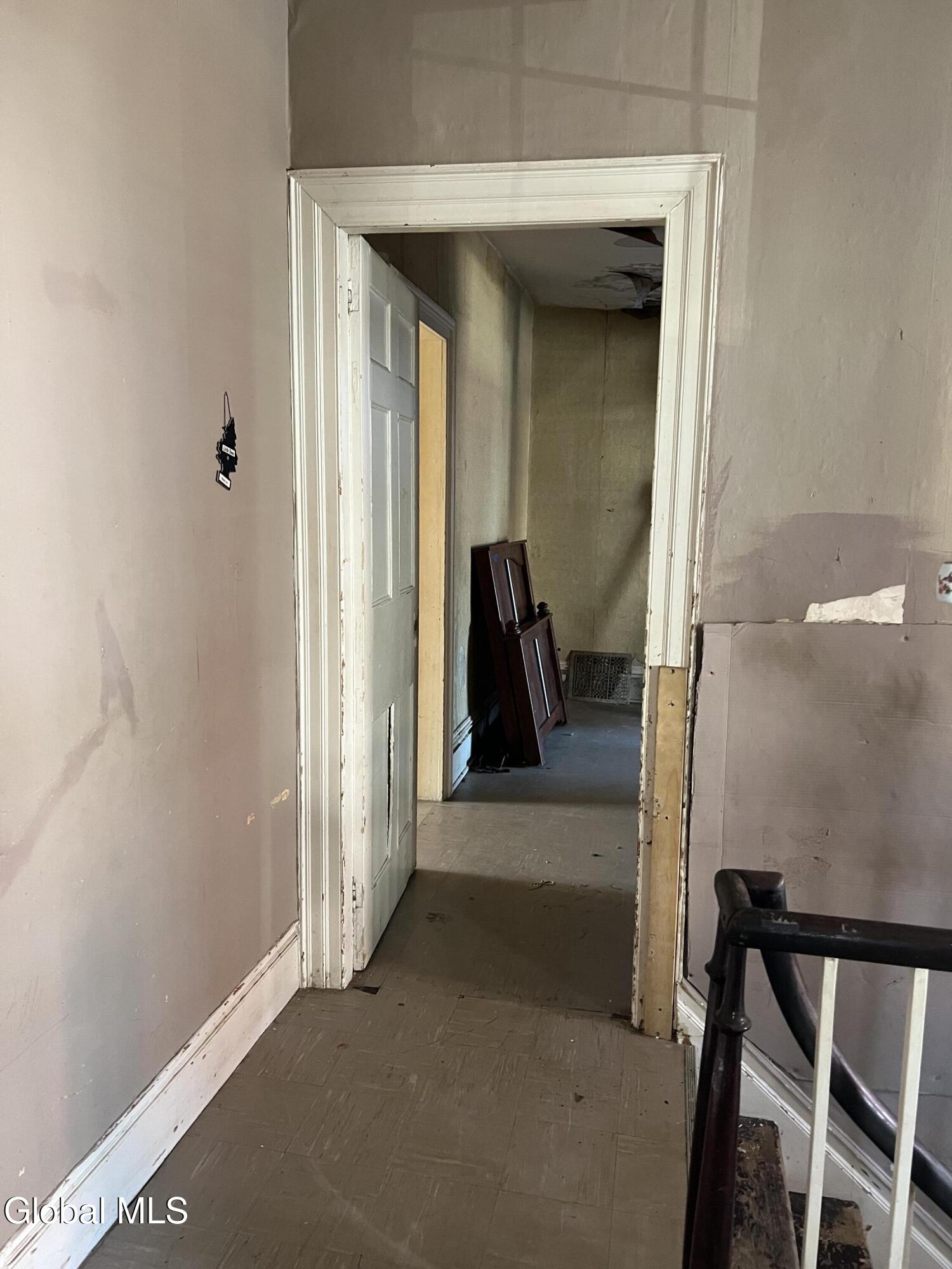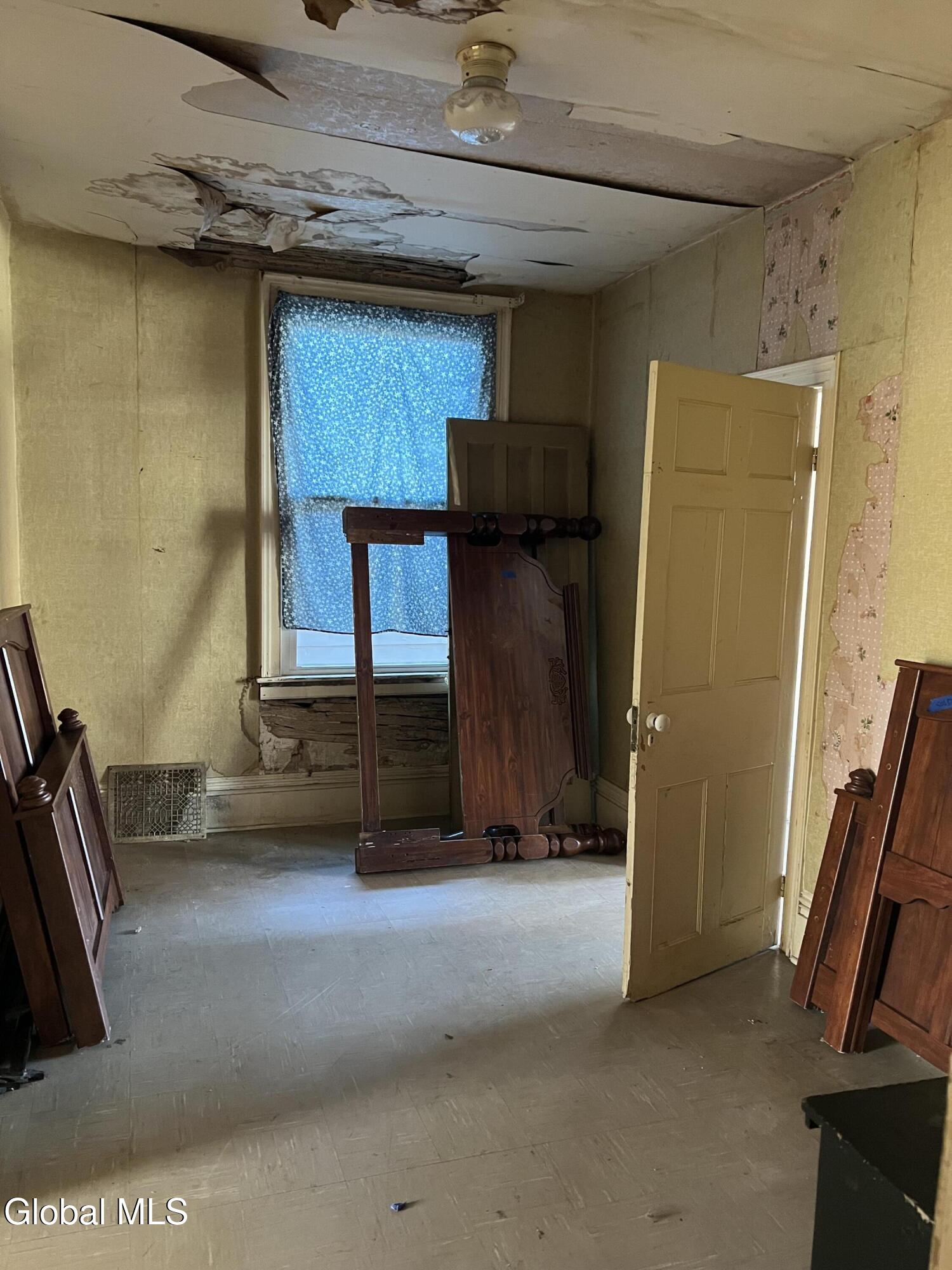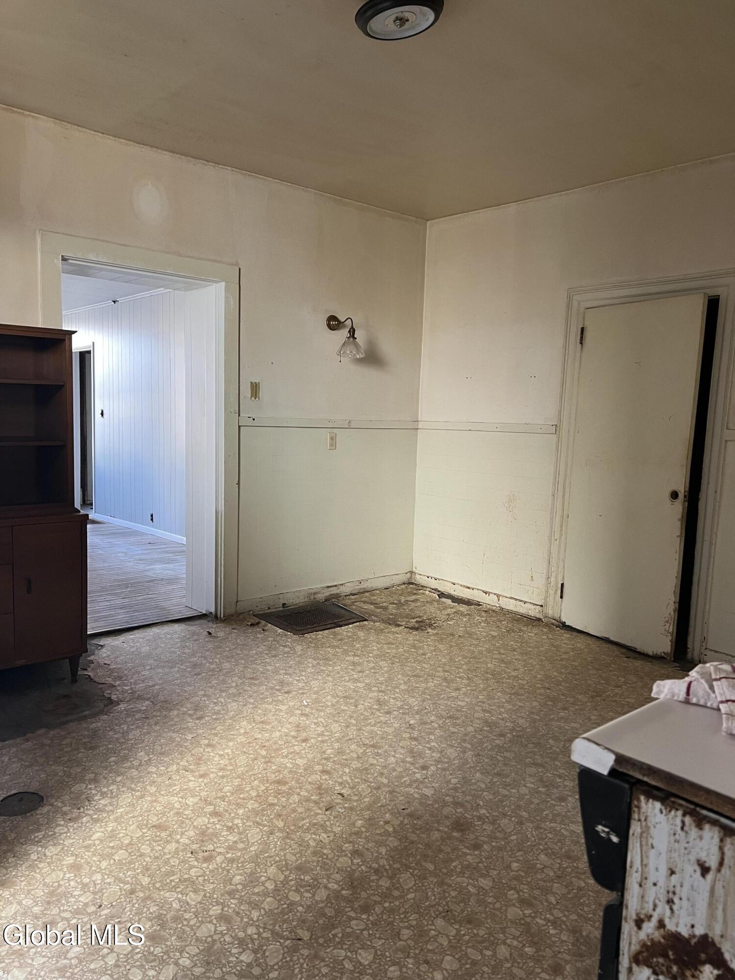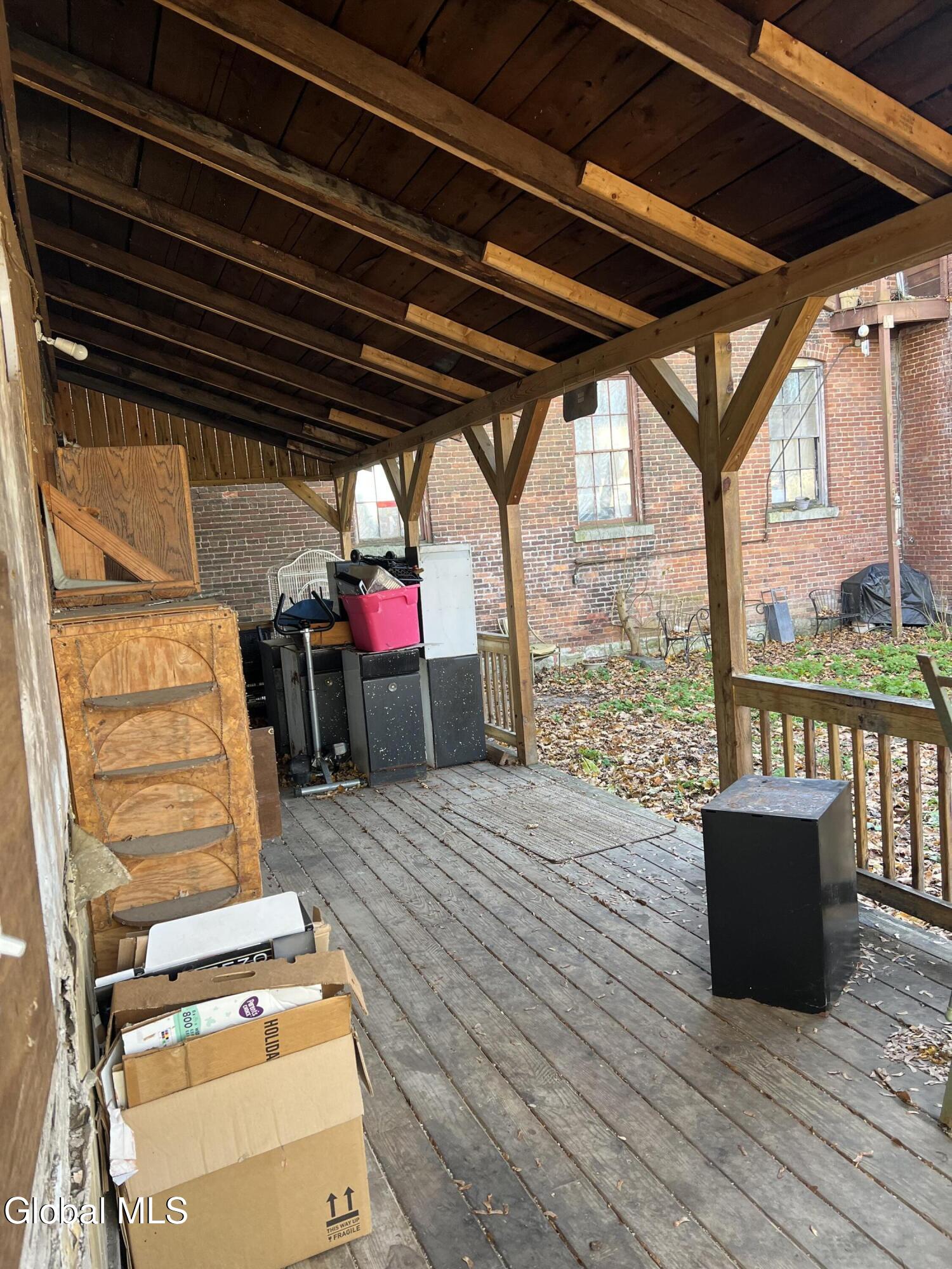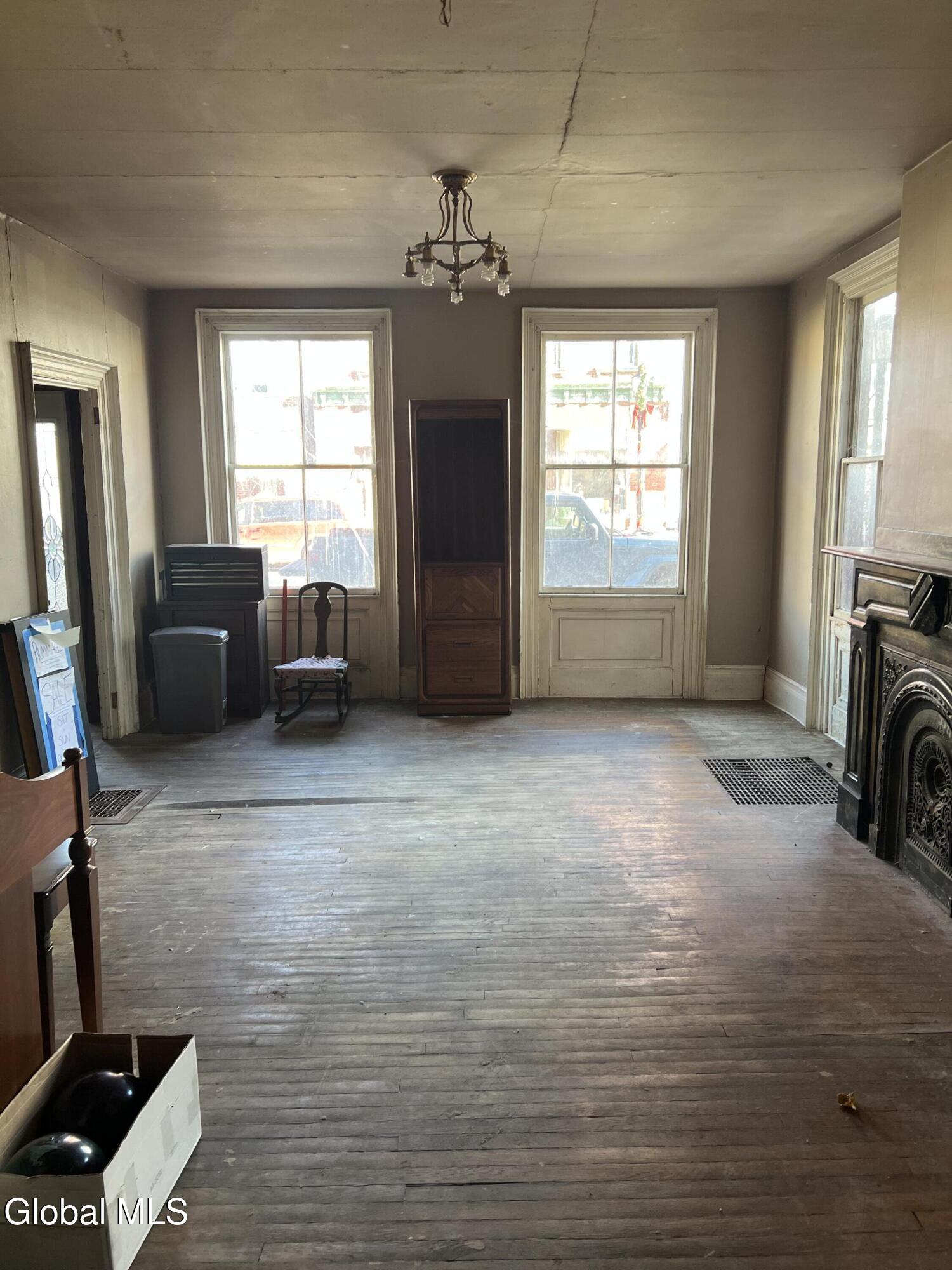 Revive and Reimagine: Endless Potential in the Heart of the Village! This property is a truly blank slate awaiting a complete revival, offering exceptional potential for either a spacious residential dwelling or a strategic commercial venture. Bring your vision, tools, sheetrock, and flooring to transform this incredible space! Key Features & Investment Potential Versatile Use: Easily configured as a two-family residence or an ideal location for a storefront, office, or creative commercial space (check local zoning). Prime Village Lot: Situated on a massive lot right in the village, offering street-to-street access with dimensions of approximately 37 x 220.4 Residential Layout: Features five full bedrooms and a full walk-up attic for future expansion or ample storage. Interior Highlights & Renovation Status Multiple Access Points: Uniquely designed with three separate staircases accessing the upper level and three distinct entrances to the house. Dining Area Refresh: The dining area adjacent to the kitchen has been recently repainted (ceiling to floor). The hardwood floor here is ready for a light sanding and a fresh coat of polyurethane to bring back its shine. Classic Charm: Discover beautiful architectural details, including a wide main staircase with a classic period light fixture, a decorative tin ceiling, and a stately marble-look fireplace (verify material). One bathroom is currently fully gutted (studs exposed) and awaits a total custom remodel. The second bathroom is functional but requires updating. Generous Backyard: Enjoy a nice-sized backyard perfect for relaxation or customer parking. Outbuildings: Includes a large storage shed and a separate garage, providing essential storage and utility space. This is a rare opportunity to acquire a substantial property in a fantastic village location. Don't miss the chance to create the home or business you've always imagined.