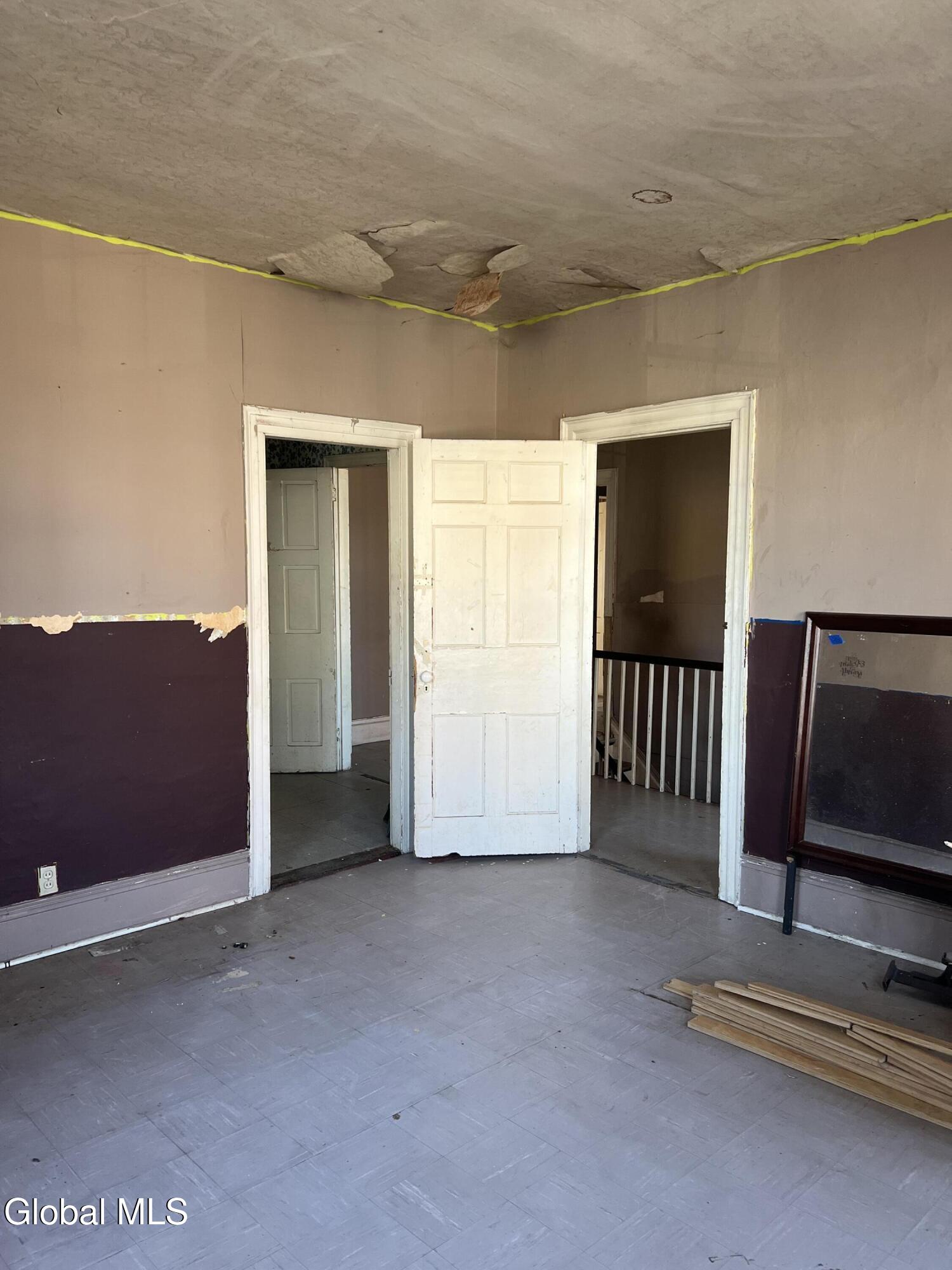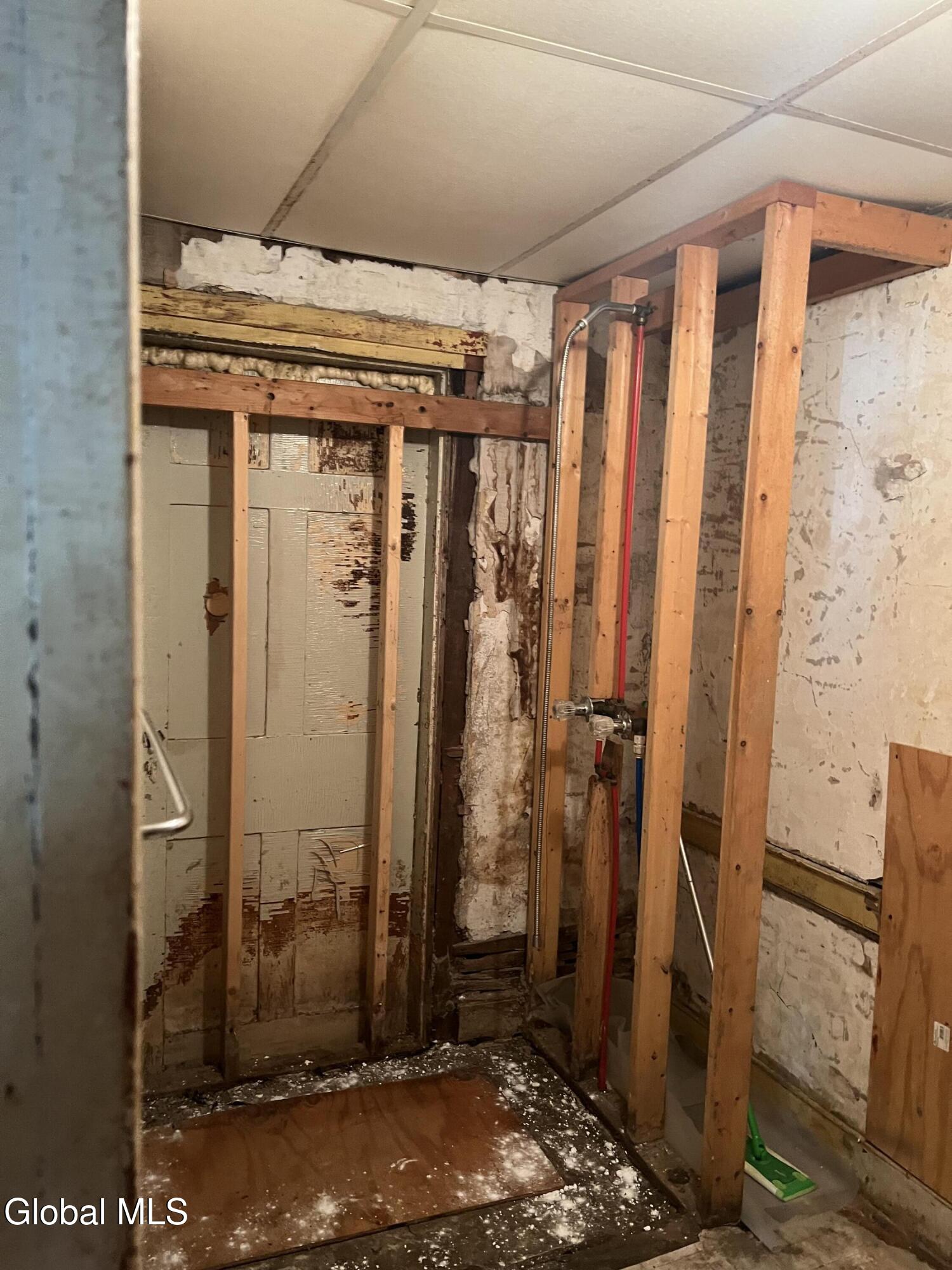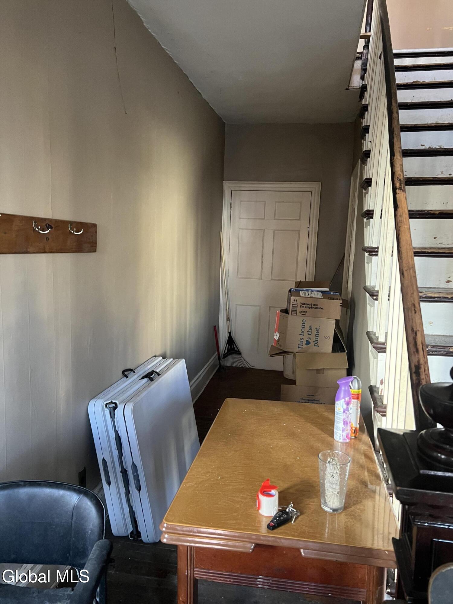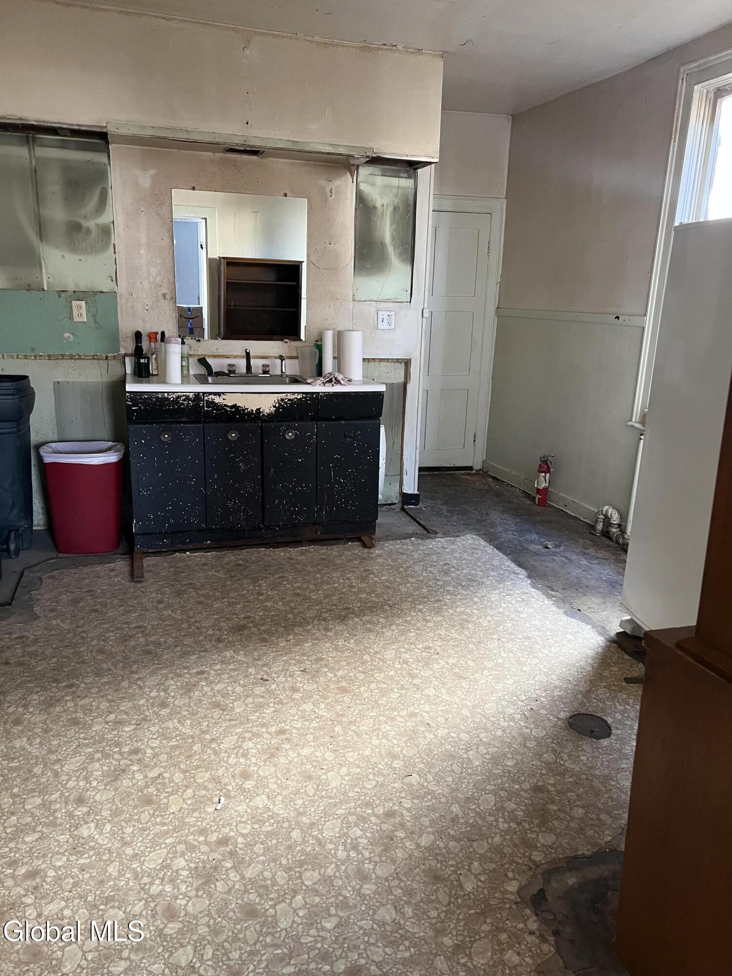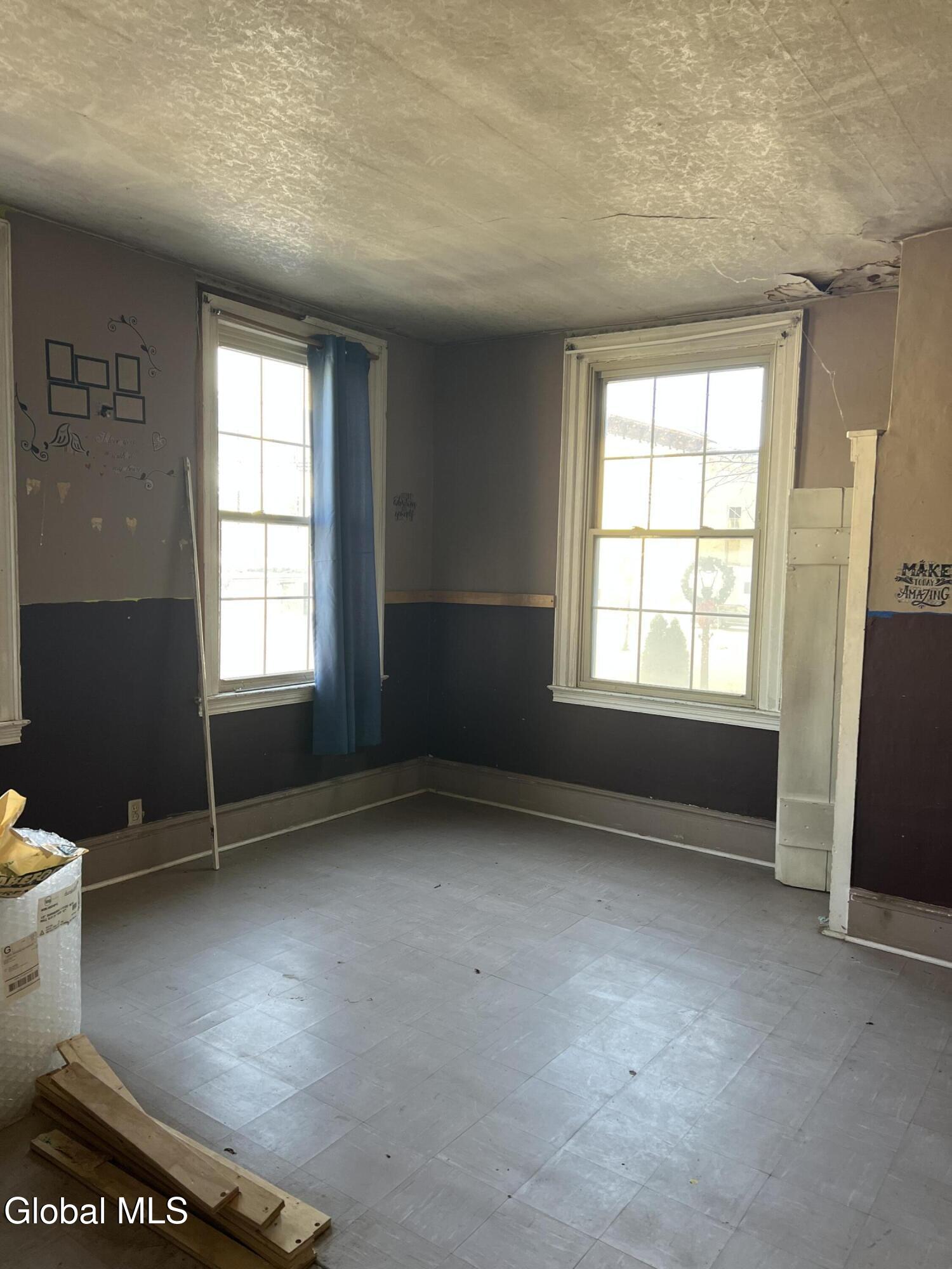Revive and Reimagine: Endless Potential in the Heart of the Village! This property is a truly blank slate awaiting a complete revival, offering exceptional potential for either a spacious residential dwelling or a strategic commercial venture. Bring your vision, tools, sheetrock, and flooring to transform this incredible space! Key Features & Investment Potential Versatile Use: Easily configured as a two-family residence or an ideal location for a storefront, office, or creative commercial space (check local zoning). Prime Village Lot: Situated on a massive lot right in the village, offering street-to-street access with dimensions of approximately 37 x 220.4 Residential Layout: Features five full bedrooms and a full walk-up attic for future expansion or ample storage. Interior Highlights & Renovation Status Multiple Access Points: Uniquely designed with three separate staircases accessing the upper level and three distinct entrances to the house. Dining Area Refresh: The dining area adjacent to the kitchen has been recently repainted (ceiling to floor). The hardwood floor here is ready for a light sanding and a fresh coat of polyurethane to bring back its shine. Classic Charm: Discover beautiful architectural details, including a wide main staircase with a classic period light fixture, a decorative tin ceiling, and a stately marble-look fireplace (verify material). One bathroom is currently fully gutted (studs exposed) and awaits a total custom remodel. The second bathroom is functional but requires updating. Generous Backyard: Enjoy a nice-sized backyard perfect for relaxation or customer parking. Outbuildings: Includes a large storage shed and a separate garage, providing essential storage and utility space. This is a rare opportunity to acquire a substantial property in a fantastic village location. Don't miss the chance to create the home or business you've always imagined.