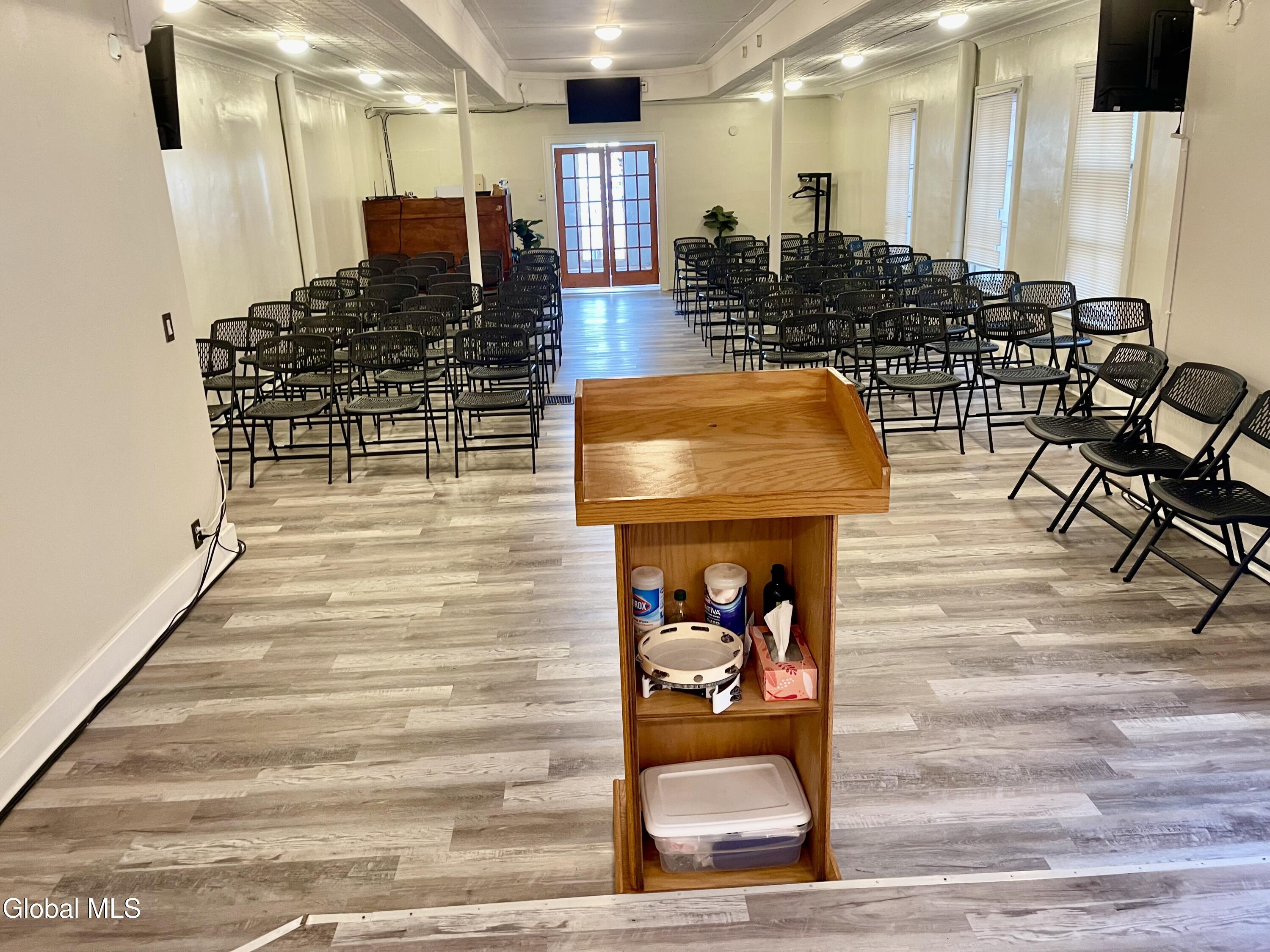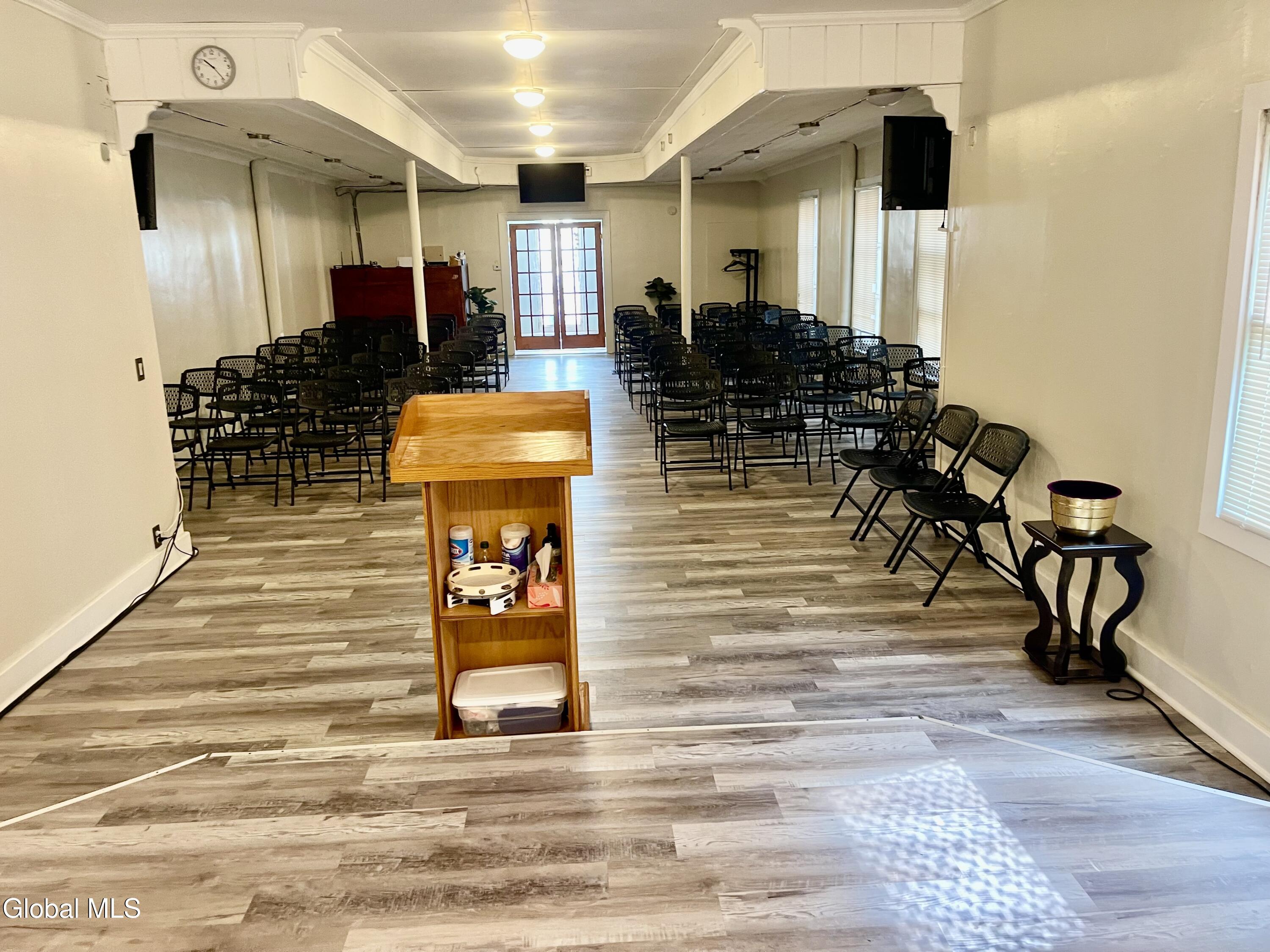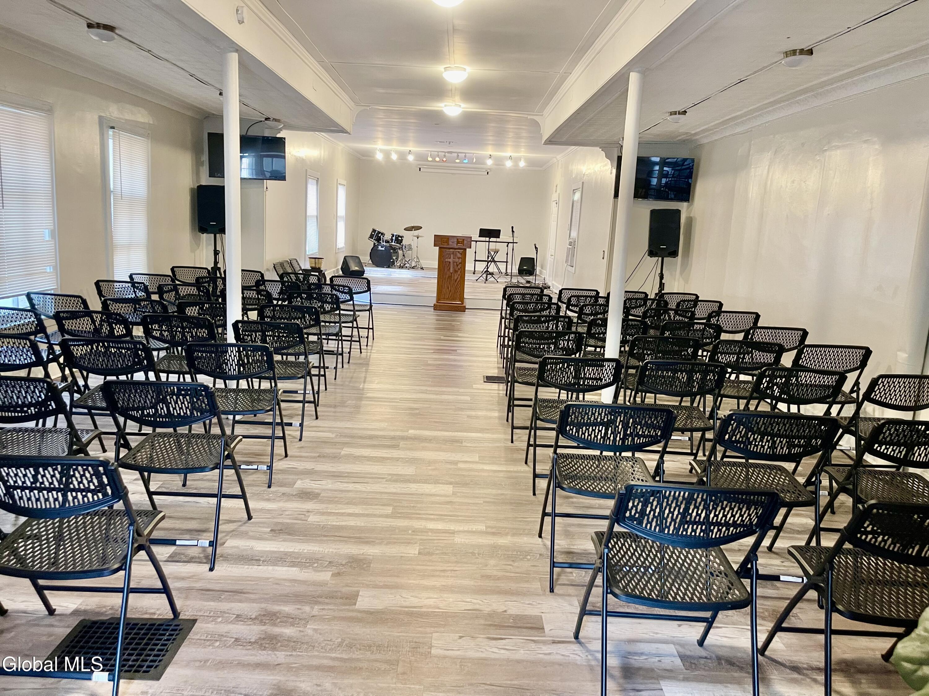 Here is a furnished and active building ready to move in . Presently is used as a Sanctuary on first floor and second floor is all equipped for dining hall or meetings However, this property could be able to have a three-unit apartment building . Its in C-2 Zoning.