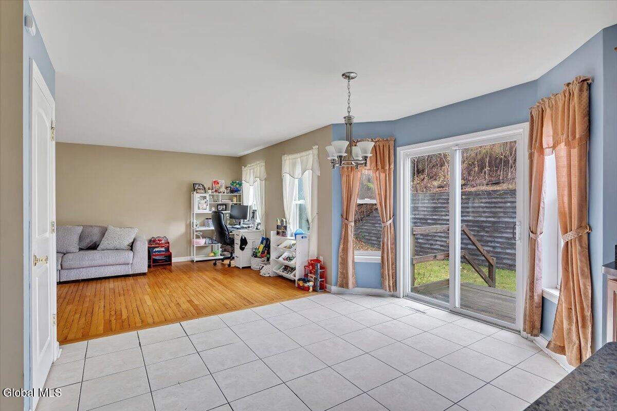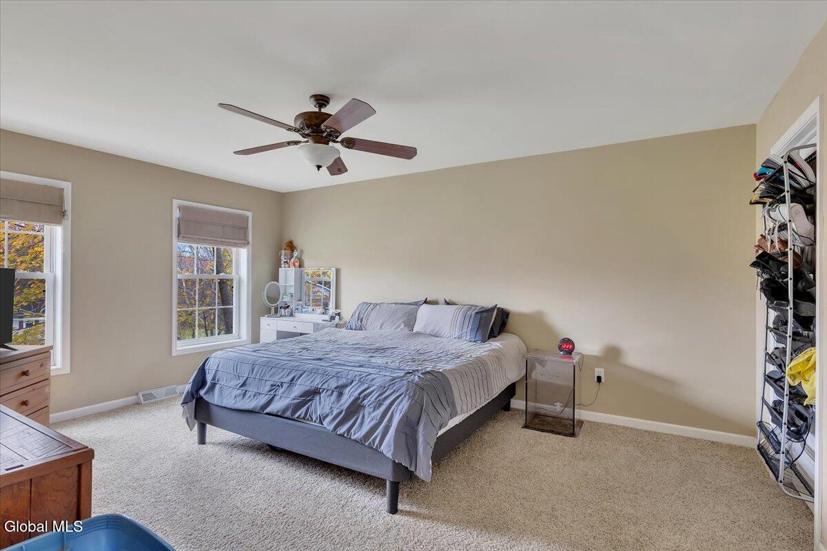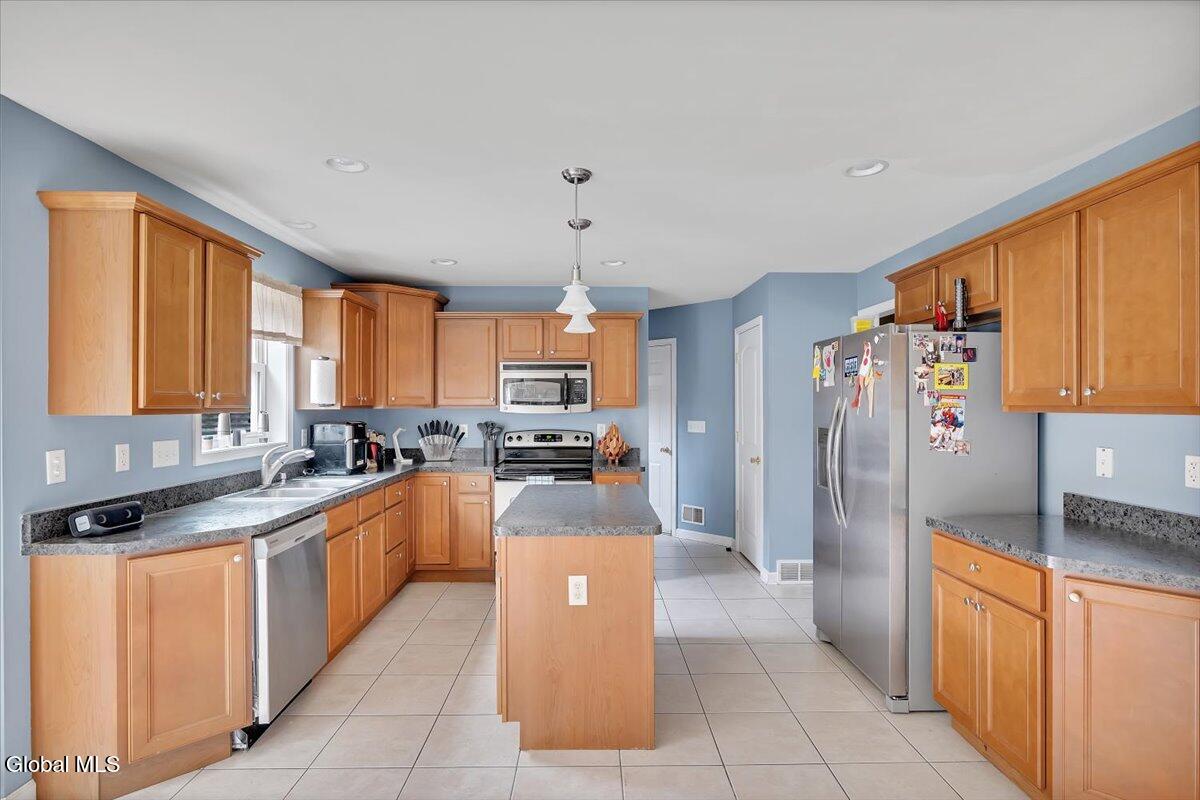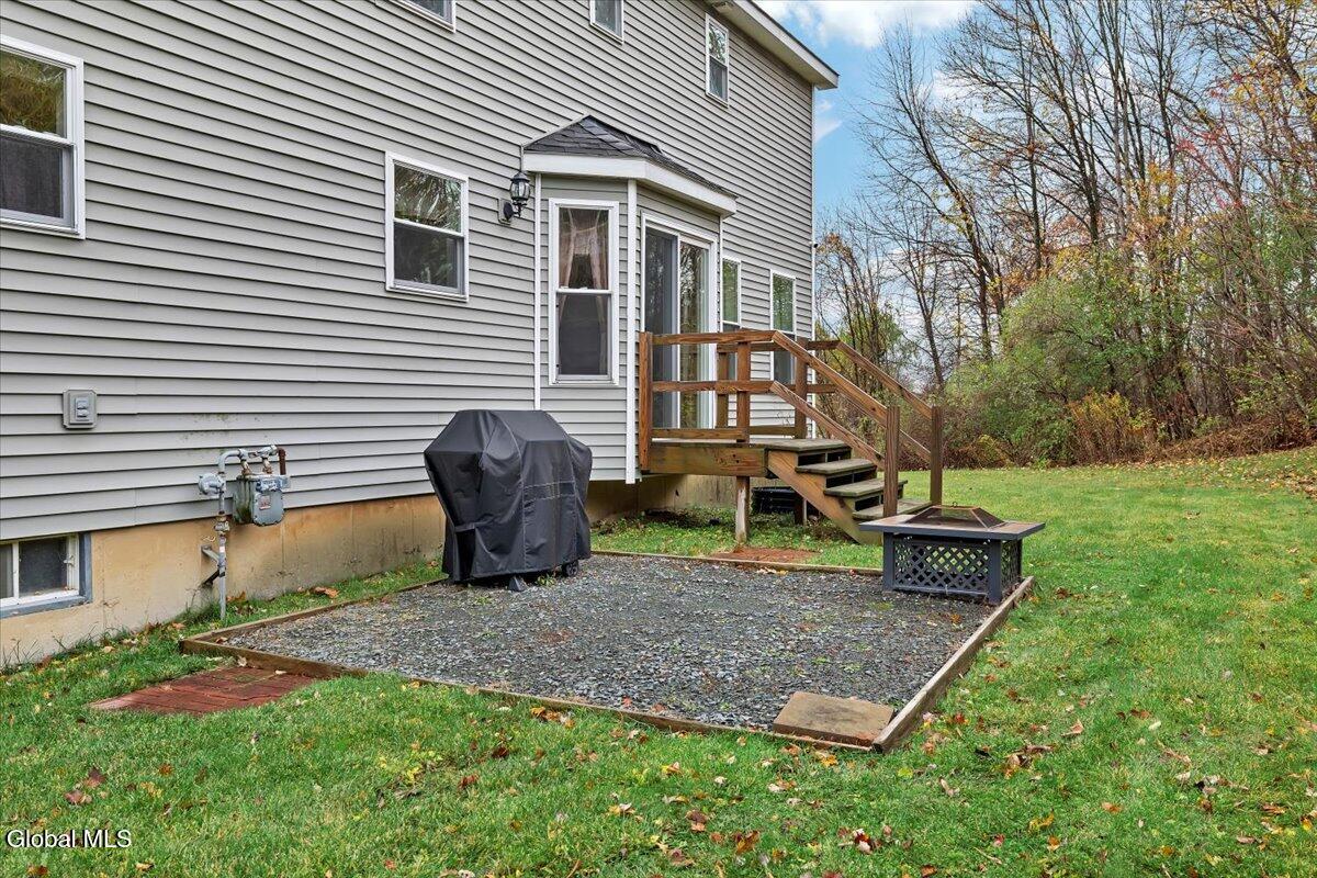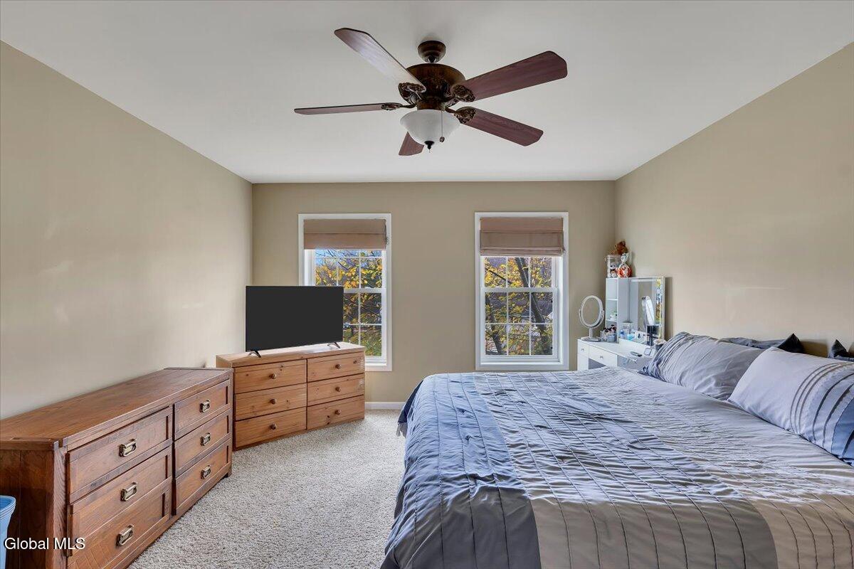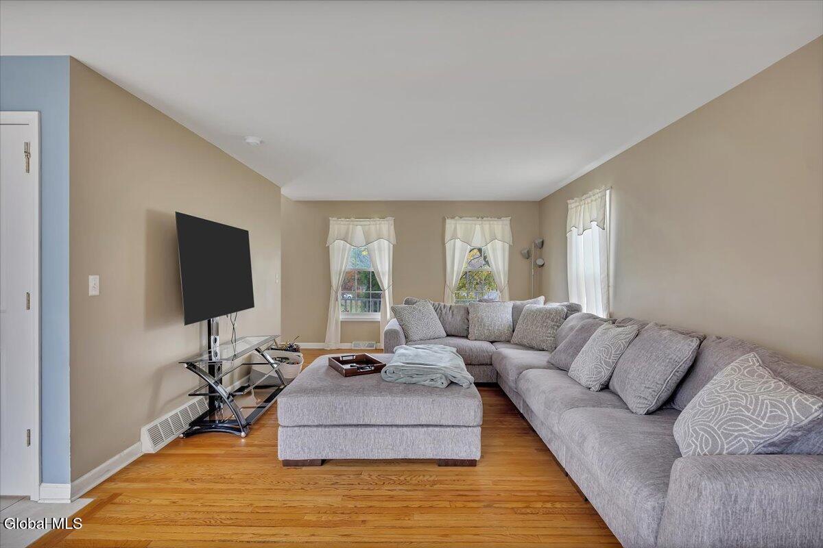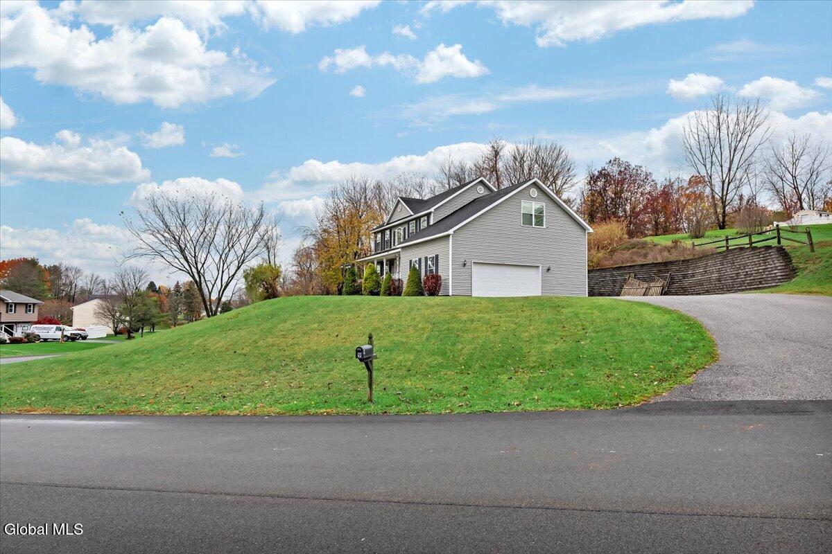 Welcome to 9 Mallards Landing N, a stately 4-bedroom, 2.5-bath Colonial offering over 2,400 square feet of elegant living space in one of Waterford's most desirable neighborhoods. Set in the Shenendehowa School District and just minutes from Clifton Park and Troy, this home delivers both refined style and everyday functionality. Curb appeal abounds with a classic symmetrical façade, a full front porch, and mature landscaping that frames the home beautifully. Step inside to a two-story foyer with tile inlay and graceful architectural details, including arched openings and decorative columns. Hardwood flooring flows into the formal dining and living rooms, both filled with natural light and designed for entertaining or relaxed daily living. The heart of the home is the spacious eat-in kitchen, featuring stainless steel appliances, a center island, and direct access to the rear deck through sliding glass doors. The adjacent family room offers a comfortable, open atmosphere with hardwood floors and plenty of room to unwind. Upstairs, the private primary suite includes a walk-in closet and a full en suite bath with dual vanities, and a tiled shower. Three additional bedrooms offer flexibility for family, guests, or remote work setups, all serviced by a second full bath. Additional highlights include central air, a two-car attached garage, public water and sewer, and a full basement for storage or future expansion. The intimate backyard provides privacy and potential for outdoor entertaining or play. This is a move-in-ready opportunity in a community known for its schools, convenience, and strong resale value. Schedule your private showing today.