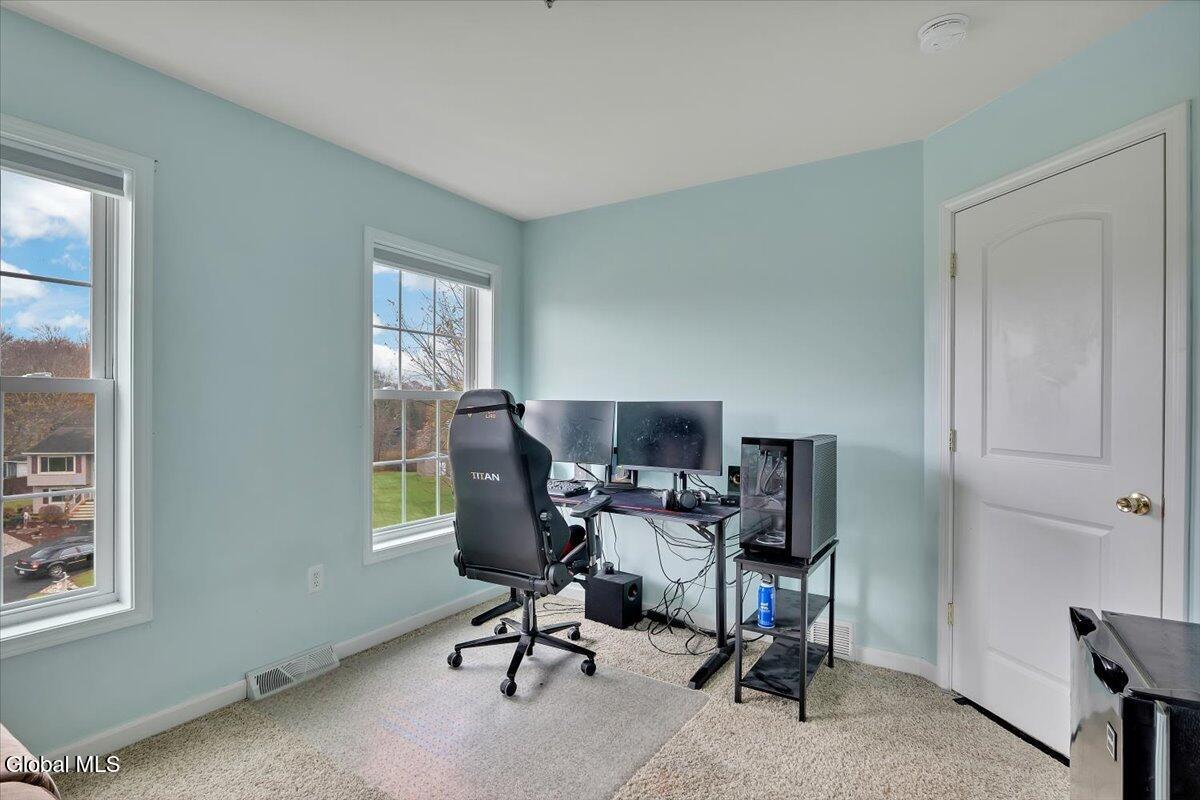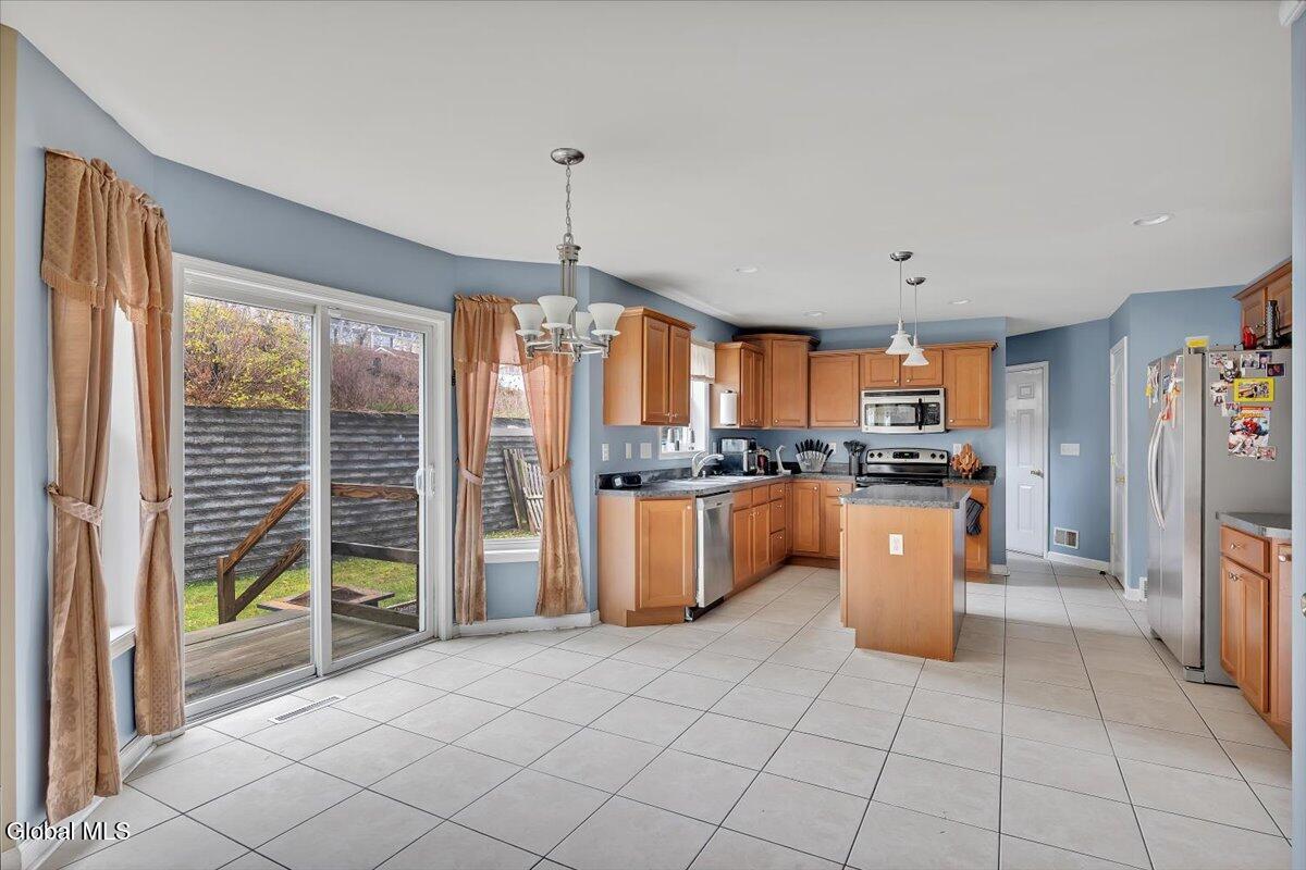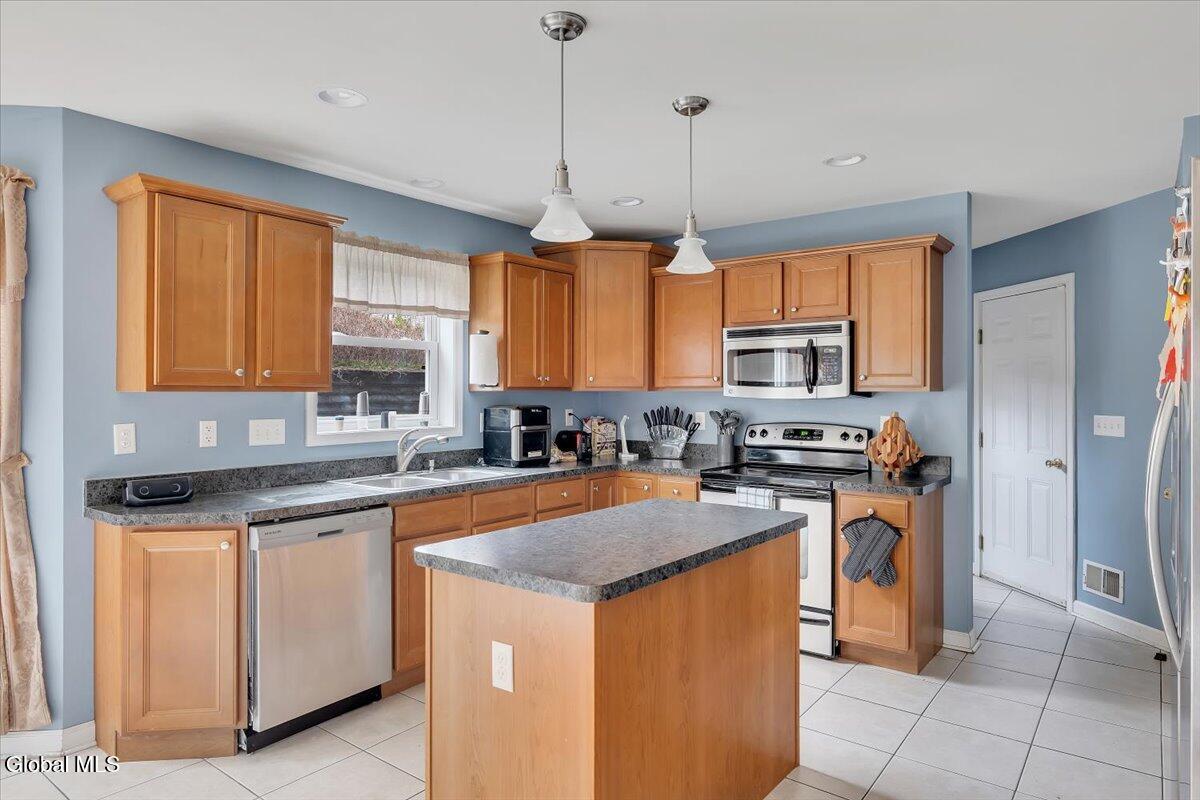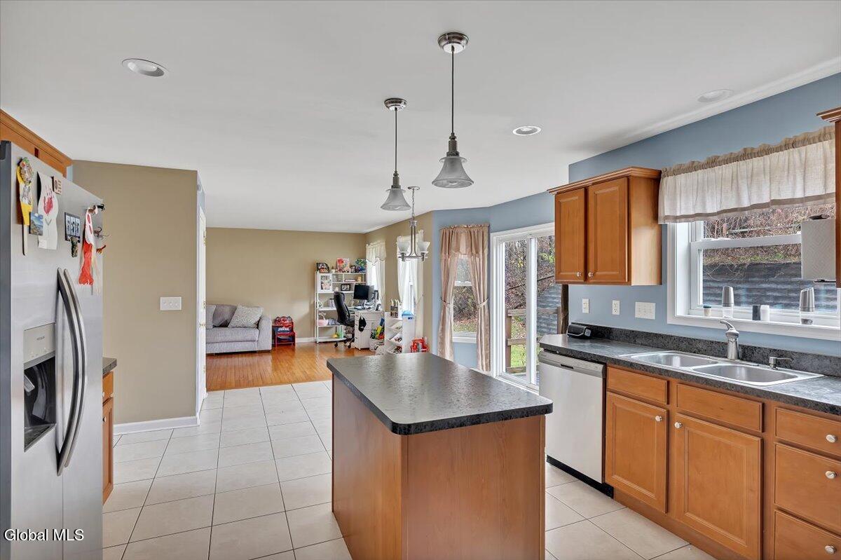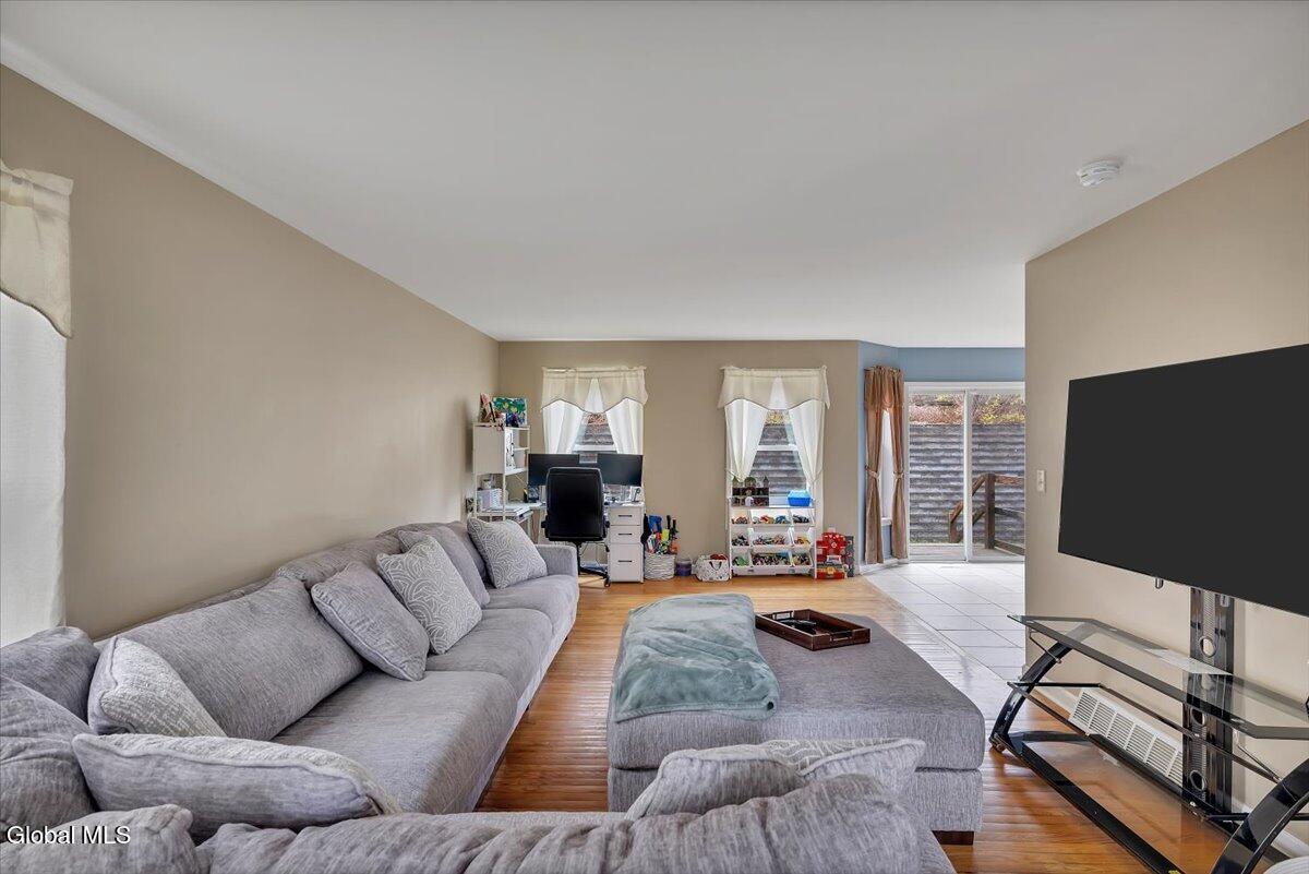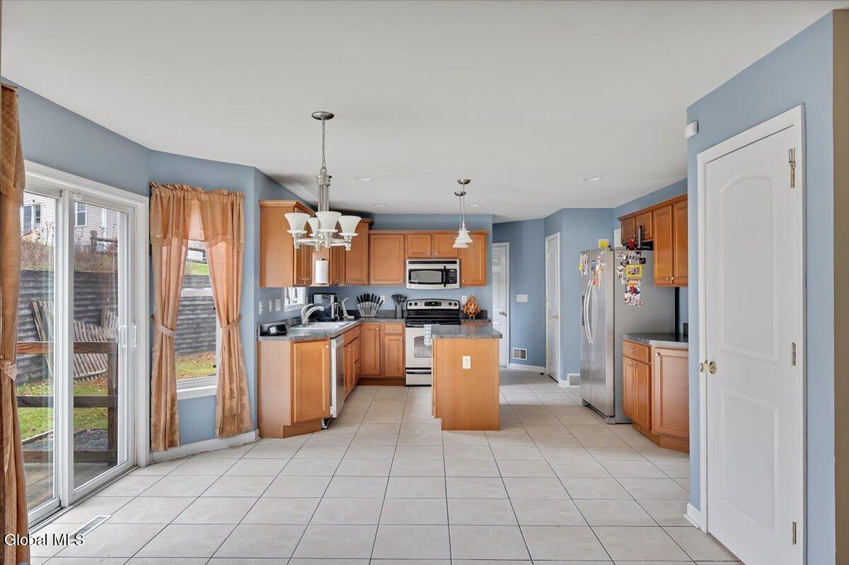 Welcome to 9 Mallards Landing N, a stately 4-bedroom, 2.5-bath Colonial offering over 2,400 square feet of elegant living space in one of Waterford's most desirable neighborhoods. Set in the Shenendehowa School District and just minutes from Clifton Park and Troy, this home delivers both refined style and everyday functionality. Curb appeal abounds with a classic symmetrical façade, a full front porch, and mature landscaping that frames the home beautifully. Step inside to a two-story foyer with tile inlay and graceful architectural details, including arched openings and decorative columns. Hardwood flooring flows into the formal dining and living rooms, both filled with natural light and designed for entertaining or relaxed daily living. The heart of the home is the spacious eat-in kitchen, featuring stainless steel appliances, a center island, and direct access to the rear deck through sliding glass doors. The adjacent family room offers a comfortable, open atmosphere with hardwood floors and plenty of room to unwind. Upstairs, the private primary suite includes a walk-in closet and a full en suite bath with dual vanities, and a tiled shower. Three additional bedrooms offer flexibility for family, guests, or remote work setups, all serviced by a second full bath. Additional highlights include central air, a two-car attached garage, public water and sewer, and a full basement for storage or future expansion. The intimate backyard provides privacy and potential for outdoor entertaining or play. This is a move-in-ready opportunity in a community known for its schools, convenience, and strong resale value. Schedule your private showing today.