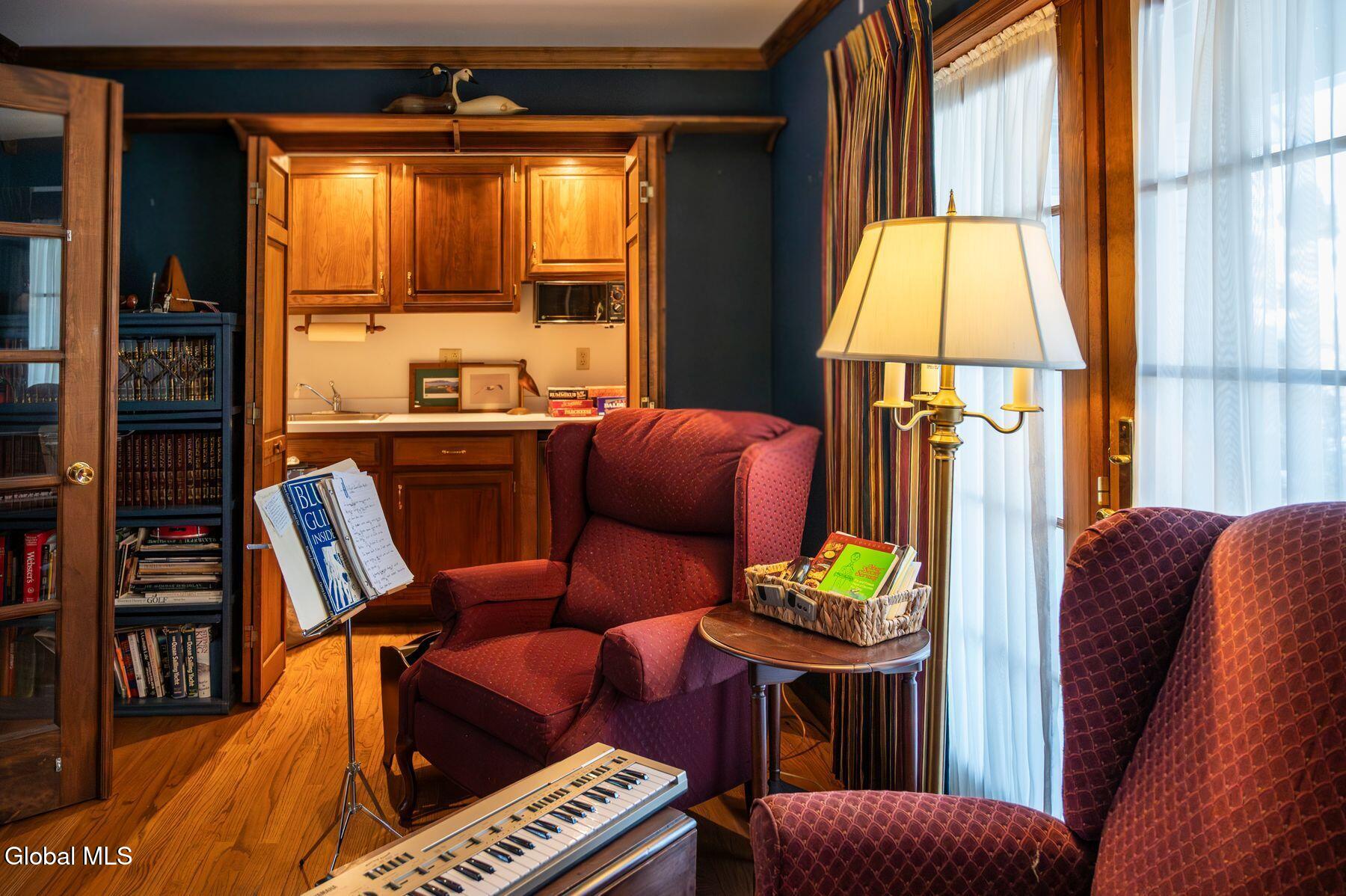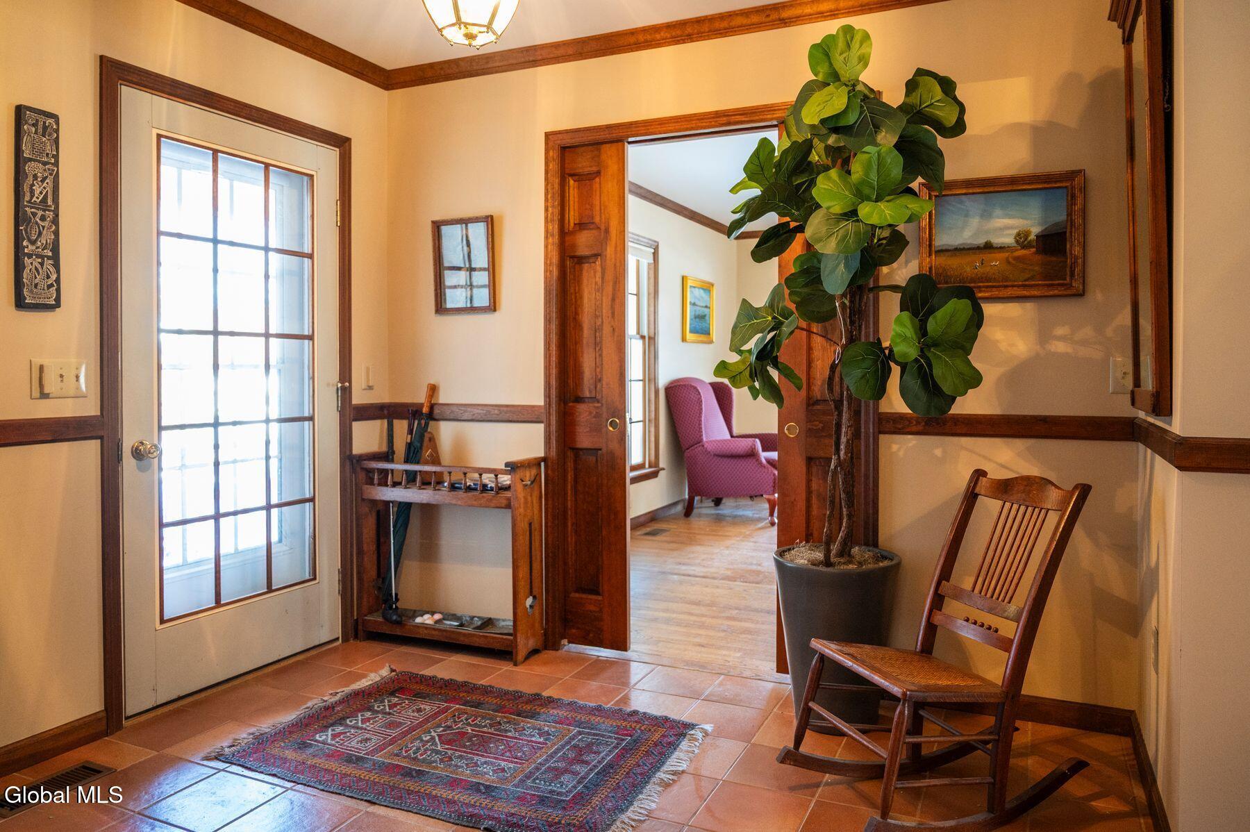 The adventure through the eastern countryside of the Lake George area begins the story with sights of tall mountains, soaring hemlock and oak trees... wide-open vistas! Come upon Hunter Lane to find a friendly and beautifully maintained neighborhood. Next, arrive home to inviting curb appeal with manicured gardens, a pretty rock wall out front, wrap-around country porch. With a three-season room, adjoining deck, backyard to forever-green Lake George Wild Forest, it is a lifestyle immersed in nature. Enter the home and be spoiled with quality woodwork top to bottom. Traditional Cape Cod details impress with French doors, built-ins and charming nooks. The story is complete: such comfort and peacefulness, just 10 minutes from the fun of the four-season playground of Lake George! Photos include virtual staging.