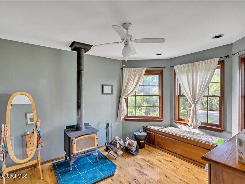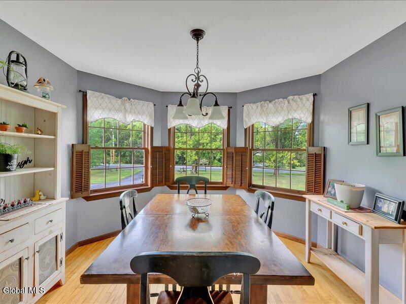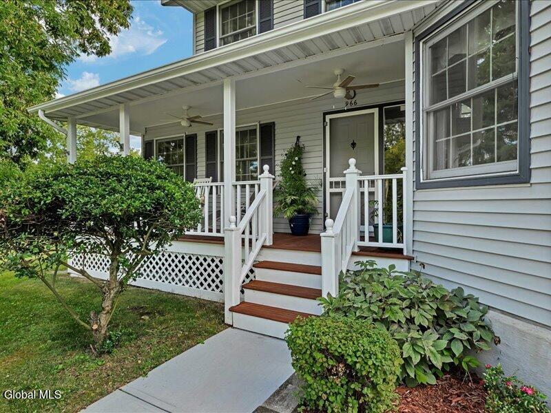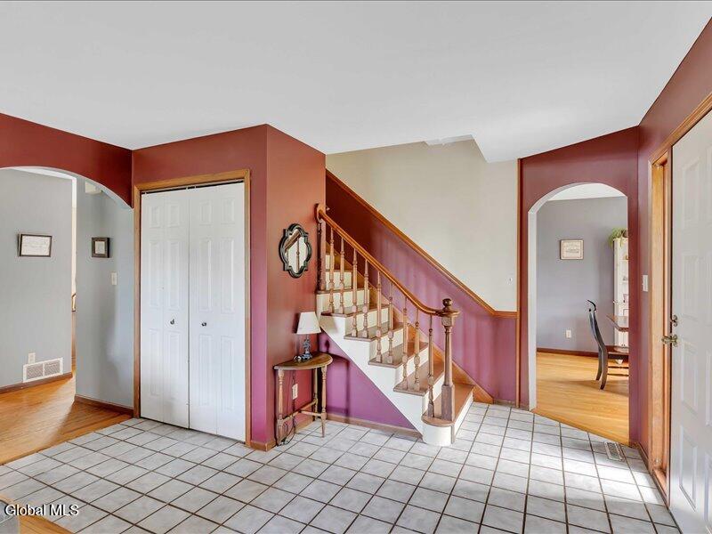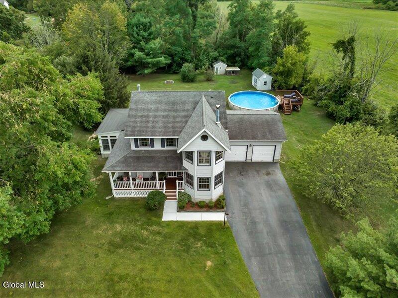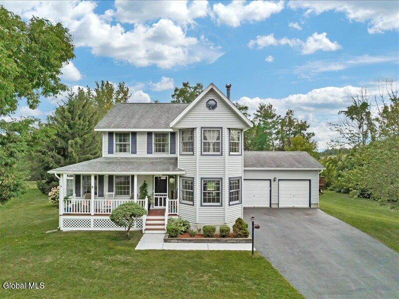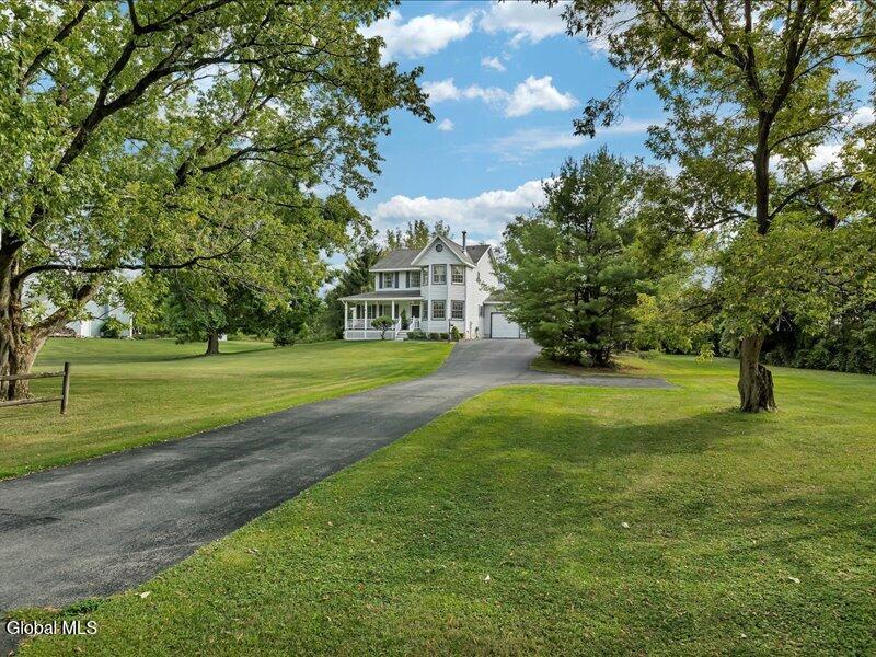 Set back from the road on 1.19 peaceful acres in Castleton, this beautifully updated and well-loved Princess Colonial offers the privacy and comfort you've been looking for. With 3 bedrooms, 2.5 baths, and 2,320 sq. ft. of living space plus a partially finished basement, this home is move-in ready and full of thoughtful details. Inside, you'll feel instantly at home. The cozy living room features a gas fireplace, while the dining room and sun-filled conservatory add warmth and charm. A den on the first floor can easily serve as a 4th bedroom. Upstairs, the spacious primary suite includes an ensuite bath and a reading room with a wood stove. Two additional bedrooms share a fully updated bath. Hardwood floors run throughout, and the home also features a wood-burning fireplace and second-floor wood stove for extra comfort. The basement is partially finished, offering space for a gym, music room, and laundry. Outdoors, enjoy a large level yard, a fire pit, a spacious back deck, a pine rocking chair front porch, an above-ground pool with equipment, a chicken coop, and a storage shed. The attached 2-car heated garage with poured concrete floor provides both convenience and functionality. Located in the Maple Hill School District, this gem is just 10 minutes to Regeneron and the Amtrak station, and only 15 minutes to the Capital District. A rare combination of privacy, updates, and lifestyle amenities make this home truly special.
