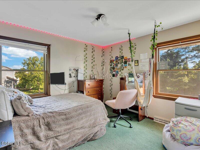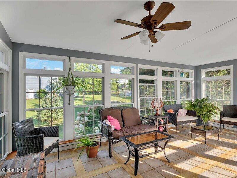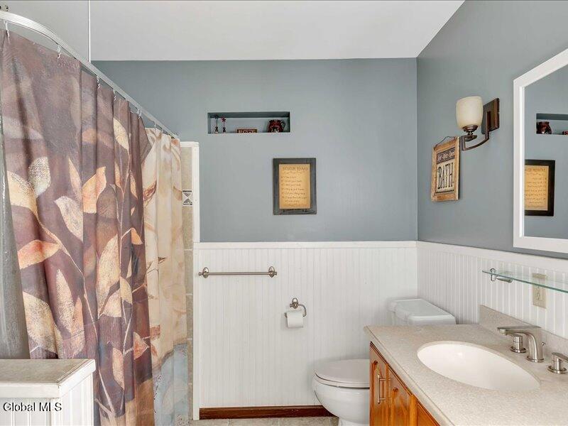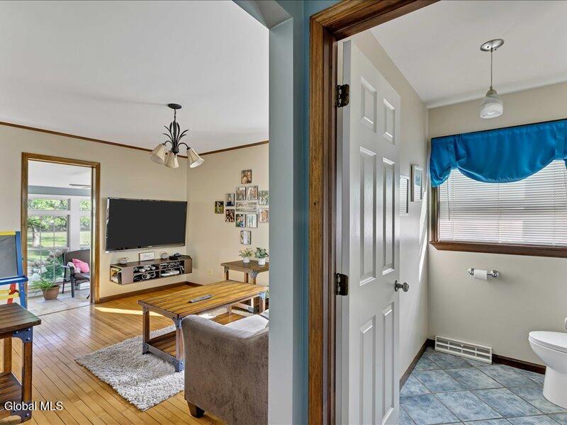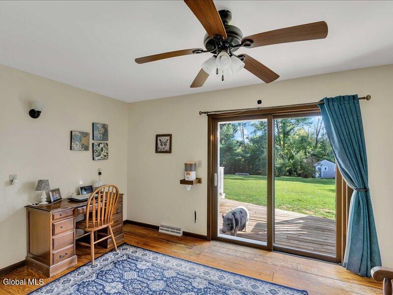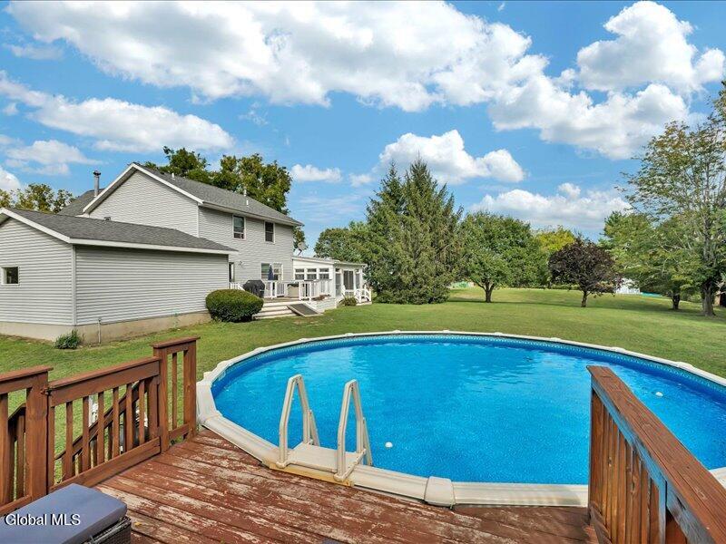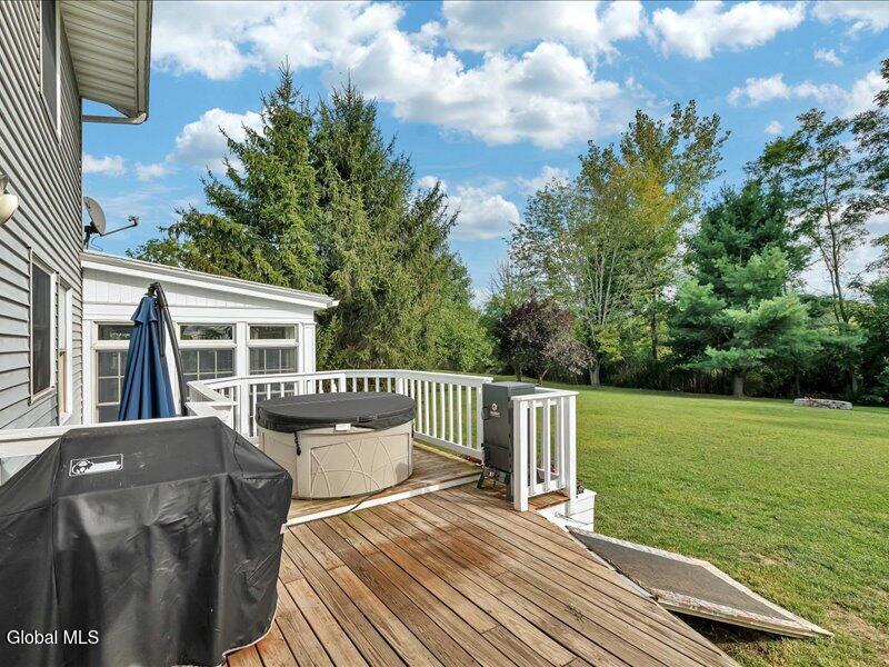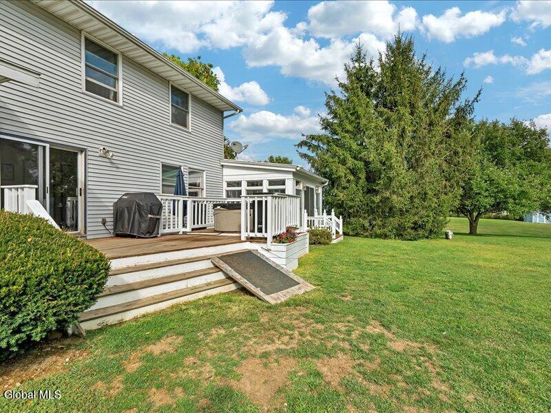 Set back from the road on 1.19 peaceful acres in Castleton, this beautifully updated and well-loved Princess Colonial offers the privacy and comfort you've been looking for. With 3 bedrooms, 2.5 baths, and 2,320 sq. ft. of living space plus a partially finished basement, this home is move-in ready and full of thoughtful details. Inside, you'll feel instantly at home. The cozy living room features a gas fireplace, while the dining room and sun-filled conservatory add warmth and charm. A den on the first floor can easily serve as a 4th bedroom. Upstairs, the spacious primary suite includes an ensuite bath and a reading room with a wood stove. Two additional bedrooms share a fully updated bath. Hardwood floors run throughout, and the home also features a wood-burning fireplace and second-floor wood stove for extra comfort. The basement is partially finished, offering space for a gym, music room, and laundry. Outdoors, enjoy a large level yard, a fire pit, a spacious back deck, a pine rocking chair front porch, an above-ground pool with equipment, a chicken coop, and a storage shed. The attached 2-car heated garage with poured concrete floor provides both convenience and functionality. Located in the Maple Hill School District, this gem is just 10 minutes to Regeneron and the Amtrak station, and only 15 minutes to the Capital District. A rare combination of privacy, updates, and lifestyle amenities make this home truly special.