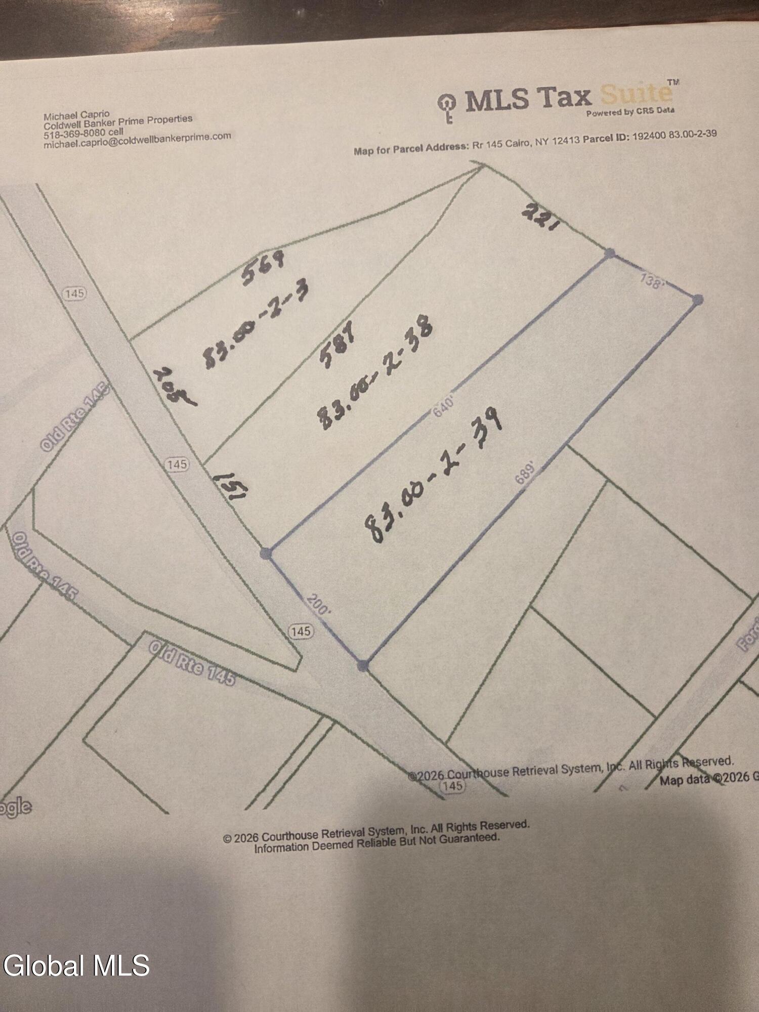Interesting 6 acres of land. Three separate lots on Route 145 near Forgione Rd. Lots are subdivided and ready to bring to Town of Cairo building dept for permits. Owner will only sell all 3 lots for one money. Land is mostly wooded and flat. Collapsed house on property. Mature trees on property. Since there is an old home there, there might also be a well but unknown to owner if that does exist. There was electric service to the old house as well. No idea or knowledge of septic location or existence. Come take a look at this property and see for yourself, how you could build a home or business here along with convenience to a highway and access to everything in the area. Thruway about 10 minutes away. Ski Windham about 20 minutes away. Cairo and East Durham are literally just down the road.