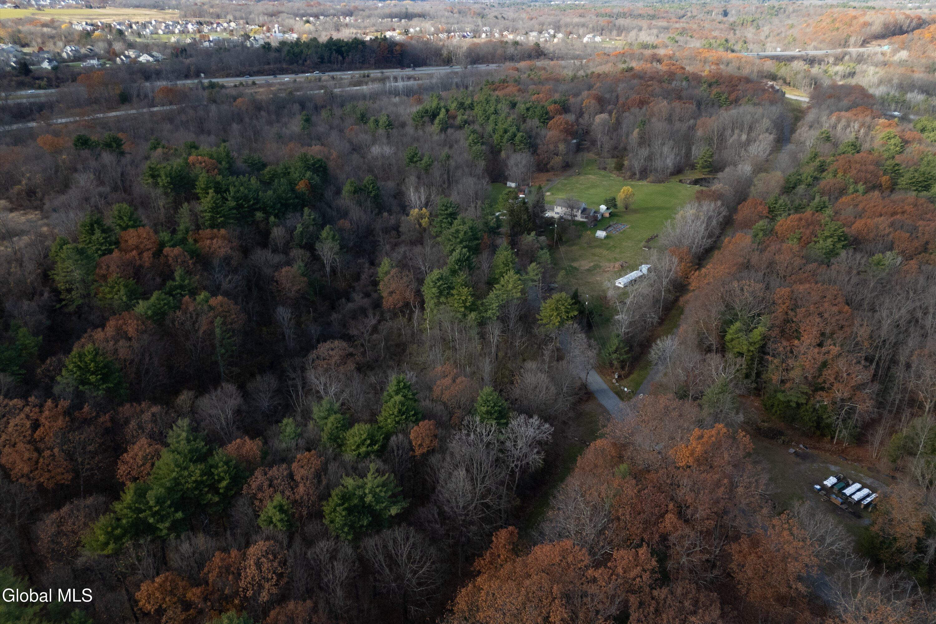 Discover endless possibilities with this rare 35-acre parcel perfectly situated in the Village of Round Lake, just minutes from I-87 and the Luther Forest Tech Park. This unique property borders the Zim Smith Trail, offering direct access to one of Saratoga County's most popular recreational paths. The land features approximately 10 acres of open pasture surrounded by mature trees, providing a peaceful, private setting ideal for a gentleman's farm, estate site, or residential subdivision. Public water, sewer, and natural gas are available at the road, adding convenience to your development or build plans. Access to the property is provided via a shared driveway. Zoned RV-1 Residential, this property presents an exceptional opportunity for builders, investors, or anyone seeking a scenic retreat in a highly desirable location. A rare blend of privacy, accessibility, and potential--right in the heart of Round Lake. Contingent upon subdivision.